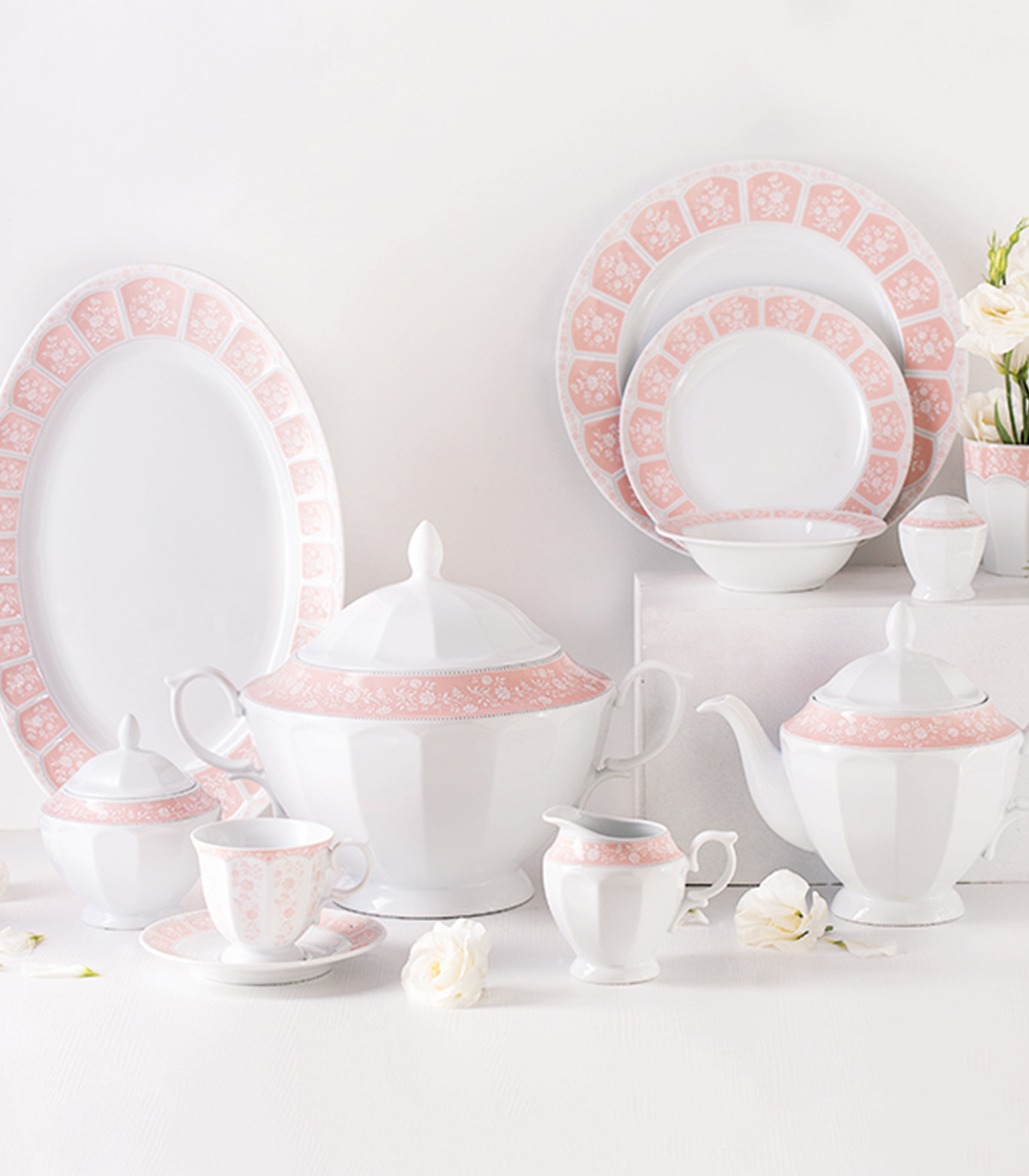 سرویس ۶نفره ۲۹ پارچ غذاخوری مدل آرتمیس صورتی سری نئوکلاسیک