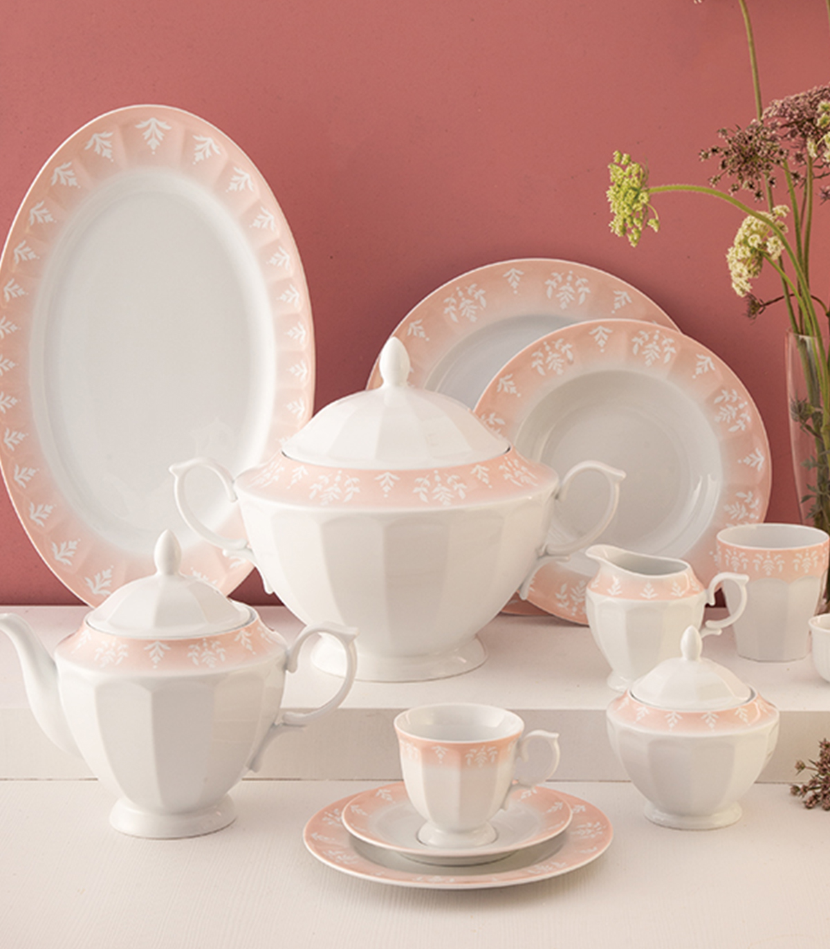 سرویس ۶نفره ۲۹ پارچ غذاخوری مدل آواسیس صورتی سری نئوکلاسیک