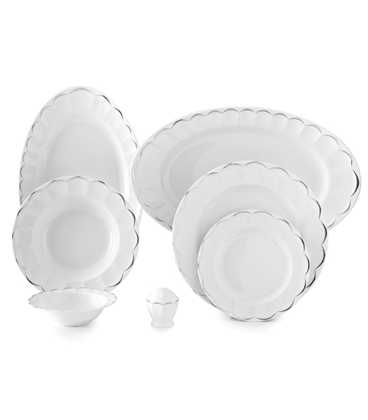 شامل | 6عدد پلوخوری، 6عدد خورش خوری، 6عدد میوه خوری، یک عدد دیس بیضی کوچک، یک عدد دیس بیضی بزرگ، 6عدد سالاد خوری کوچک، 2عدد نمک پاش |