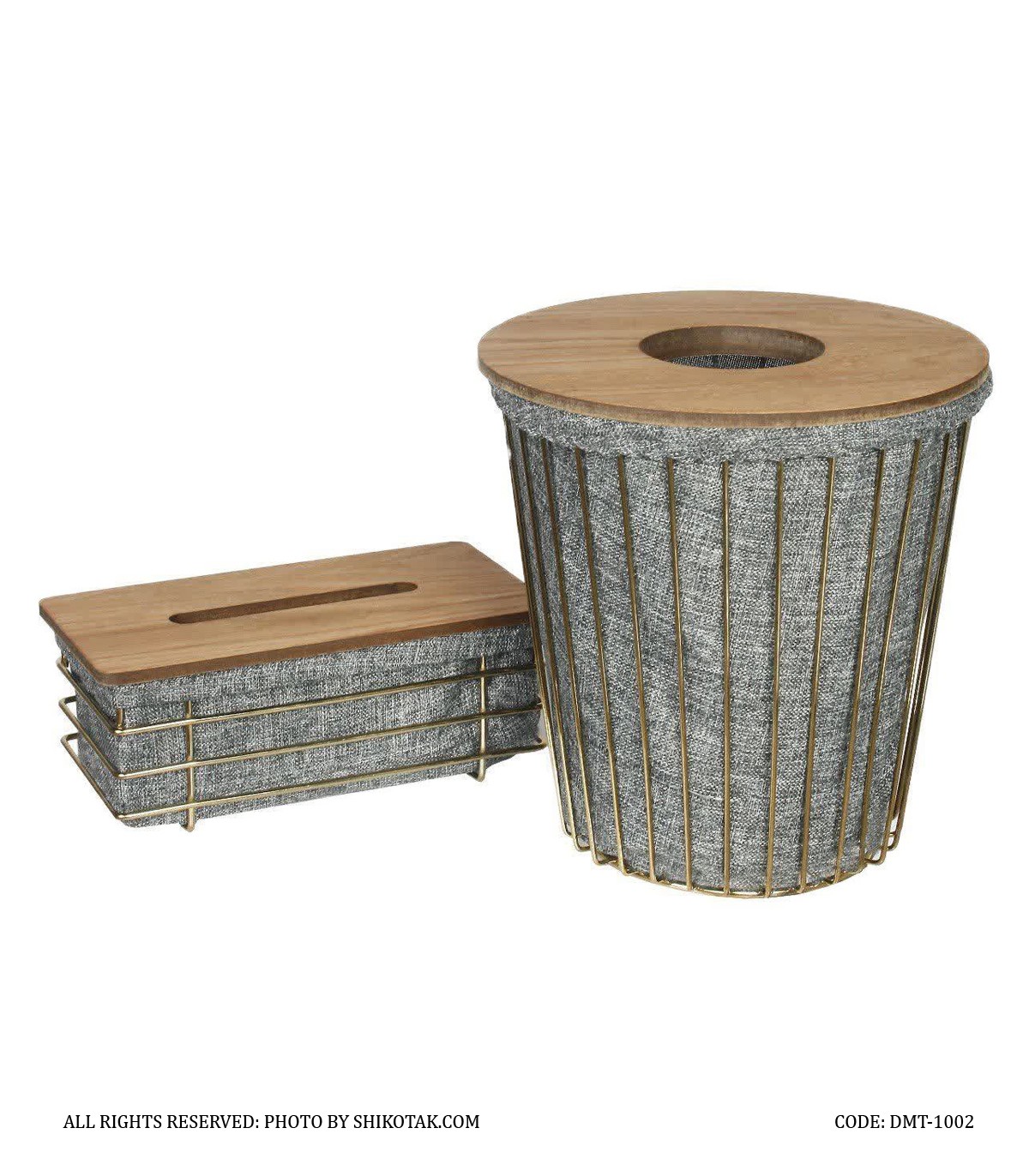 سطل و دستمال فلزی گرد طوسی طلایی مدل مانیا