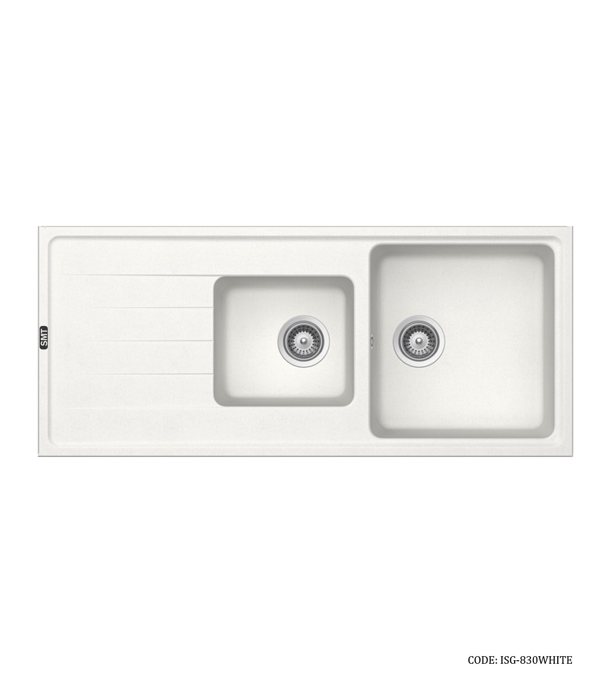 سینک ظرفشویی گرانیتی سفید توکار دو لگنه SMT مدل ۸۳۰