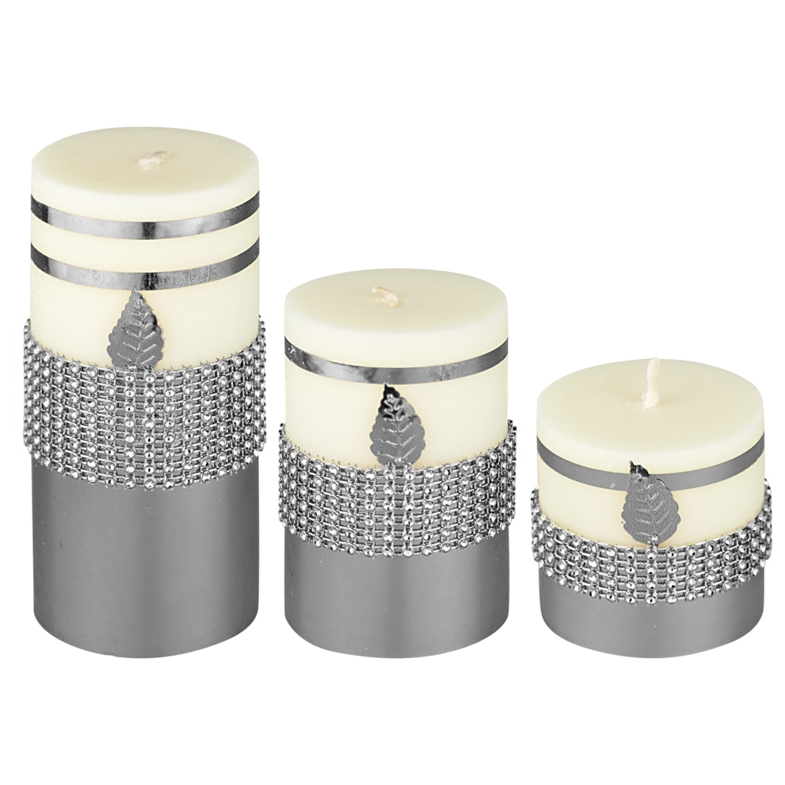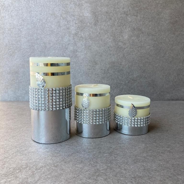 شمع آیینه ای نقره ای مدل گلبرگ مجموعه سه عددی