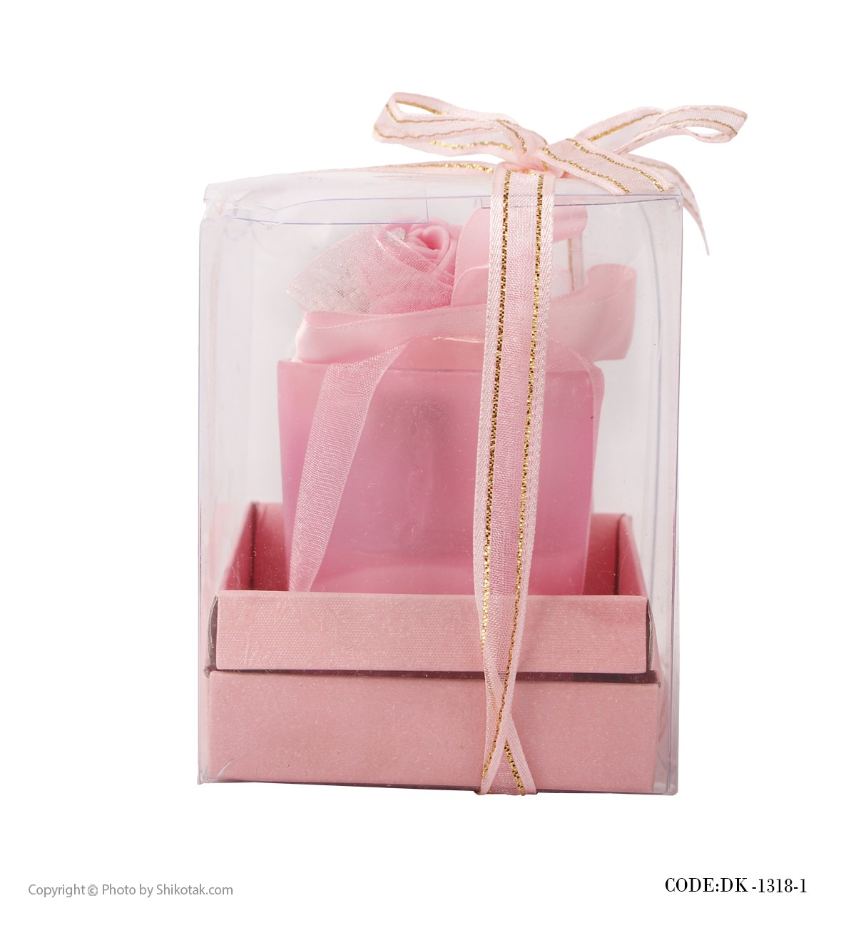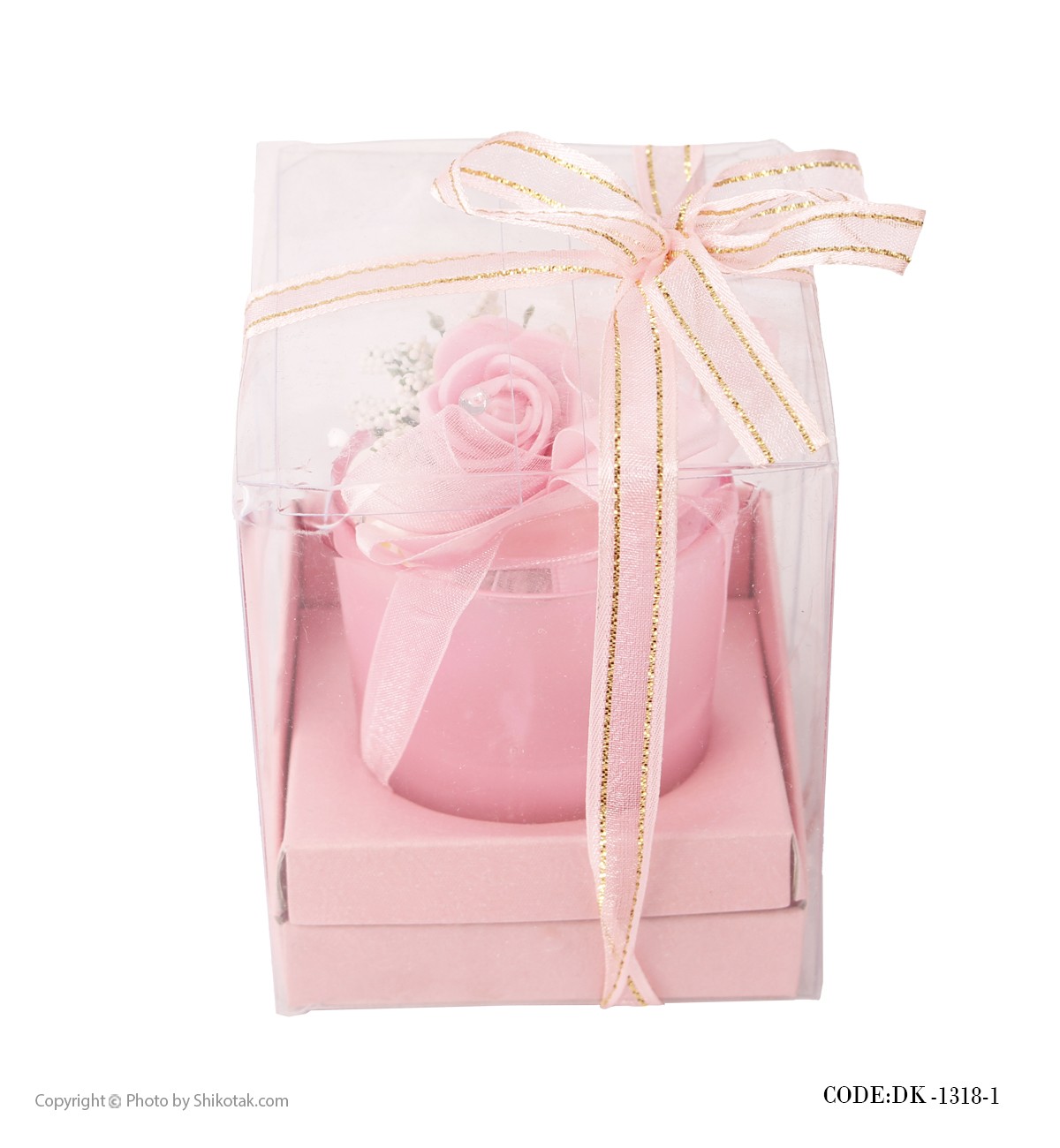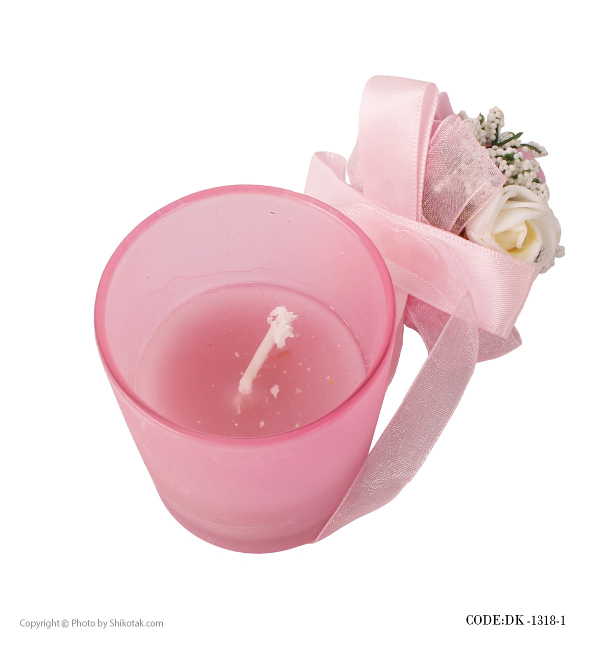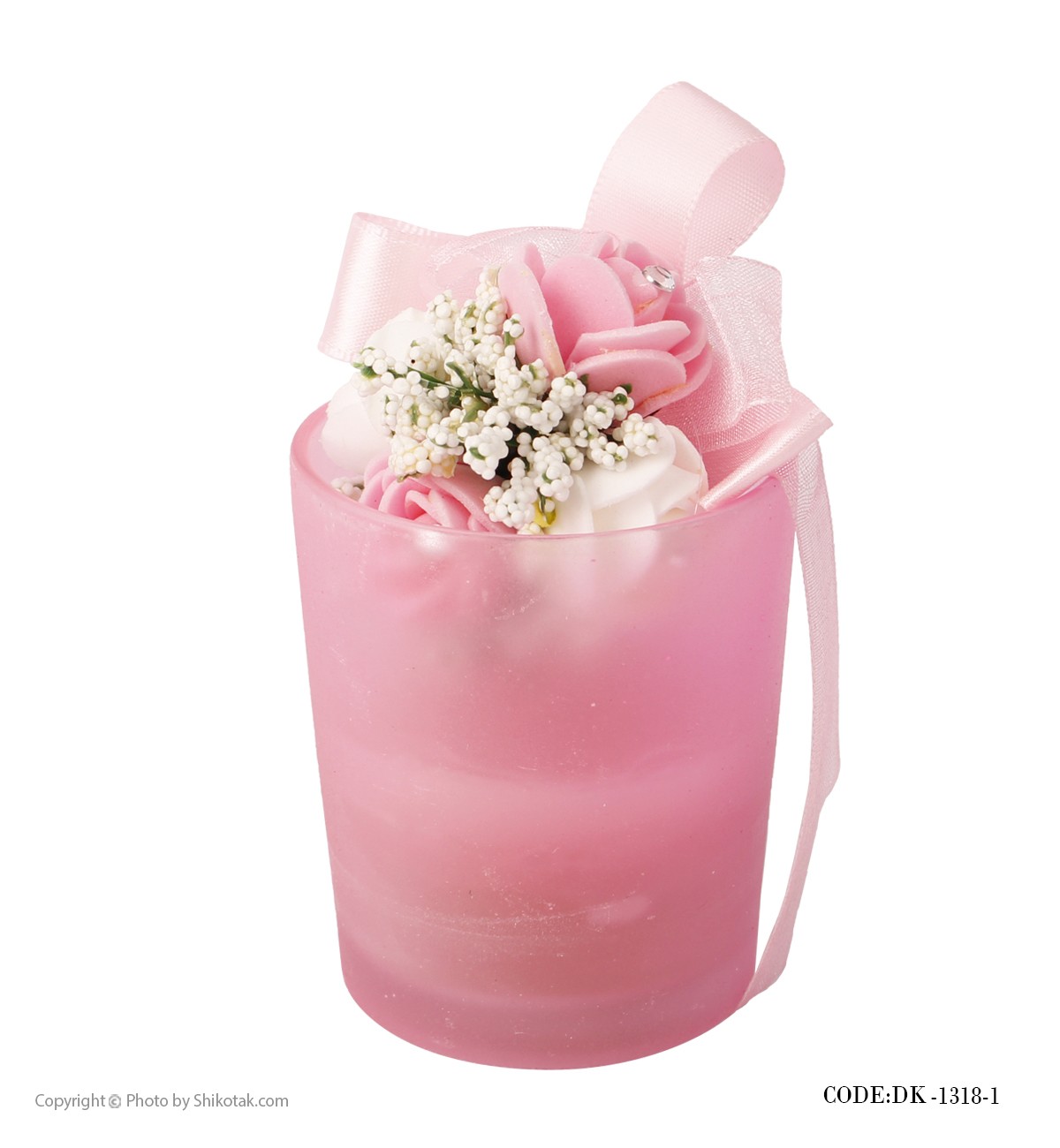 شمع فانتزی صورتی نمونه ای از یک شمع عطری< است که با گل های مصنوعی زیبایی تزیین شده است که باعث زیبایی بیشتر آن شده است . این شمع فانتزی به شکل یک لیوان طراحی شده است که شمع داخل آن قرار گرفته است .