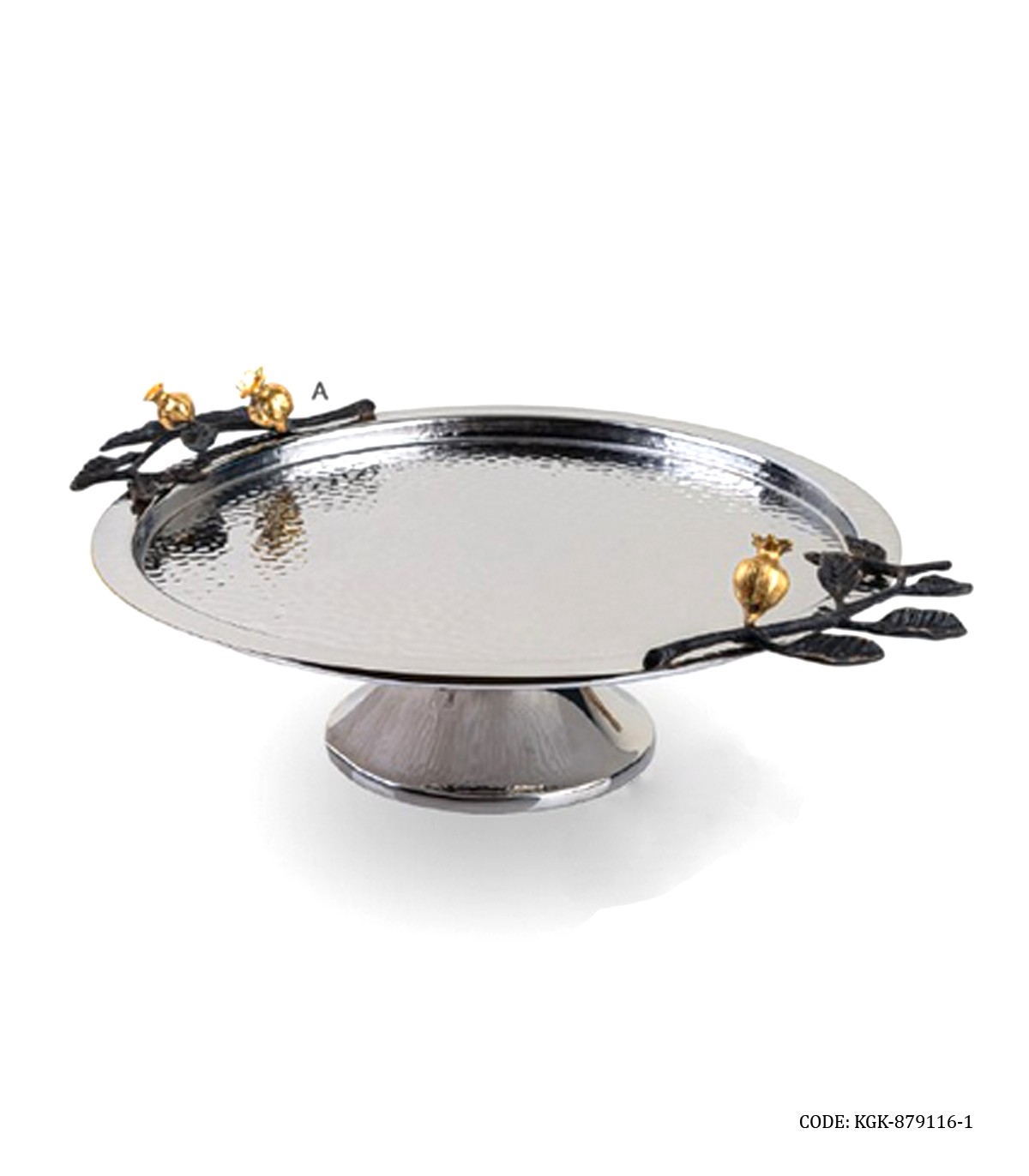 ظرف استیل گرد پایه دار میوه و شیرینی طرح غنچه