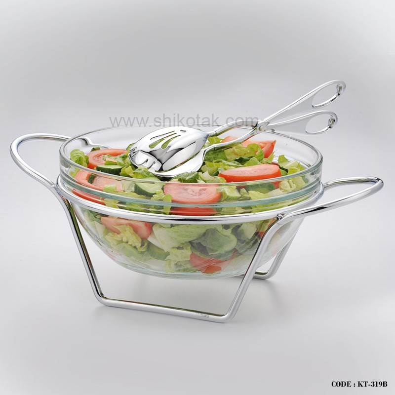 - ظرف سالادخوری و قاشق و چنگال سالاد