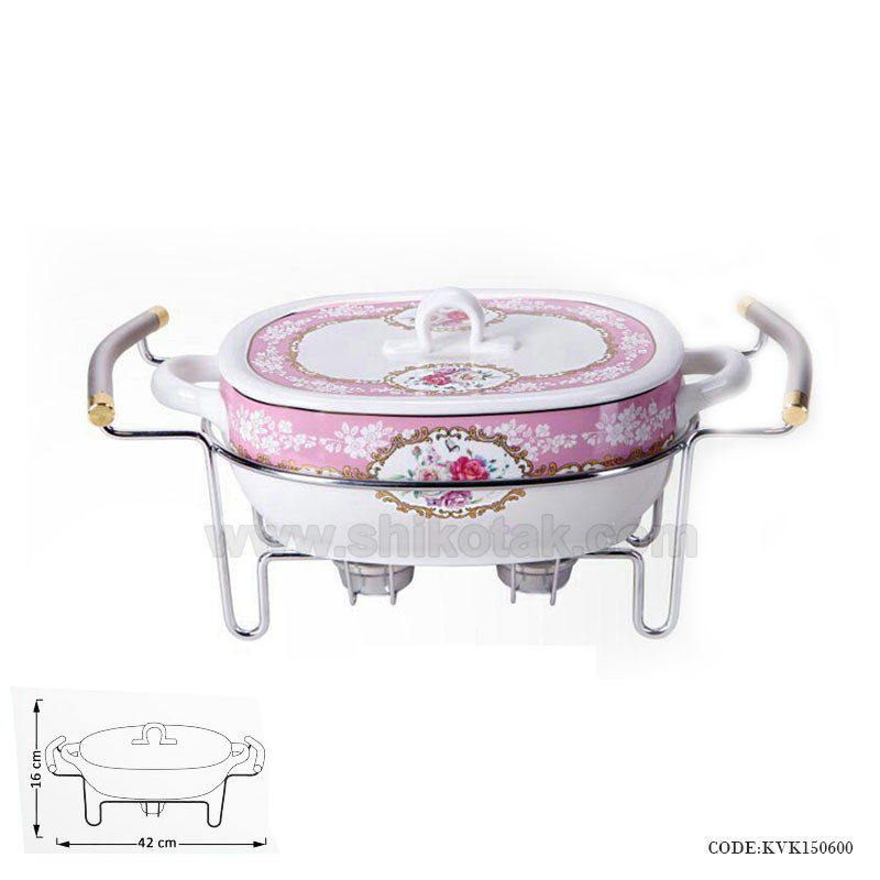 این ظرف سوفله درب دار است و به وسیله یک وارمر غذای شما را گرم نگه می دارد .