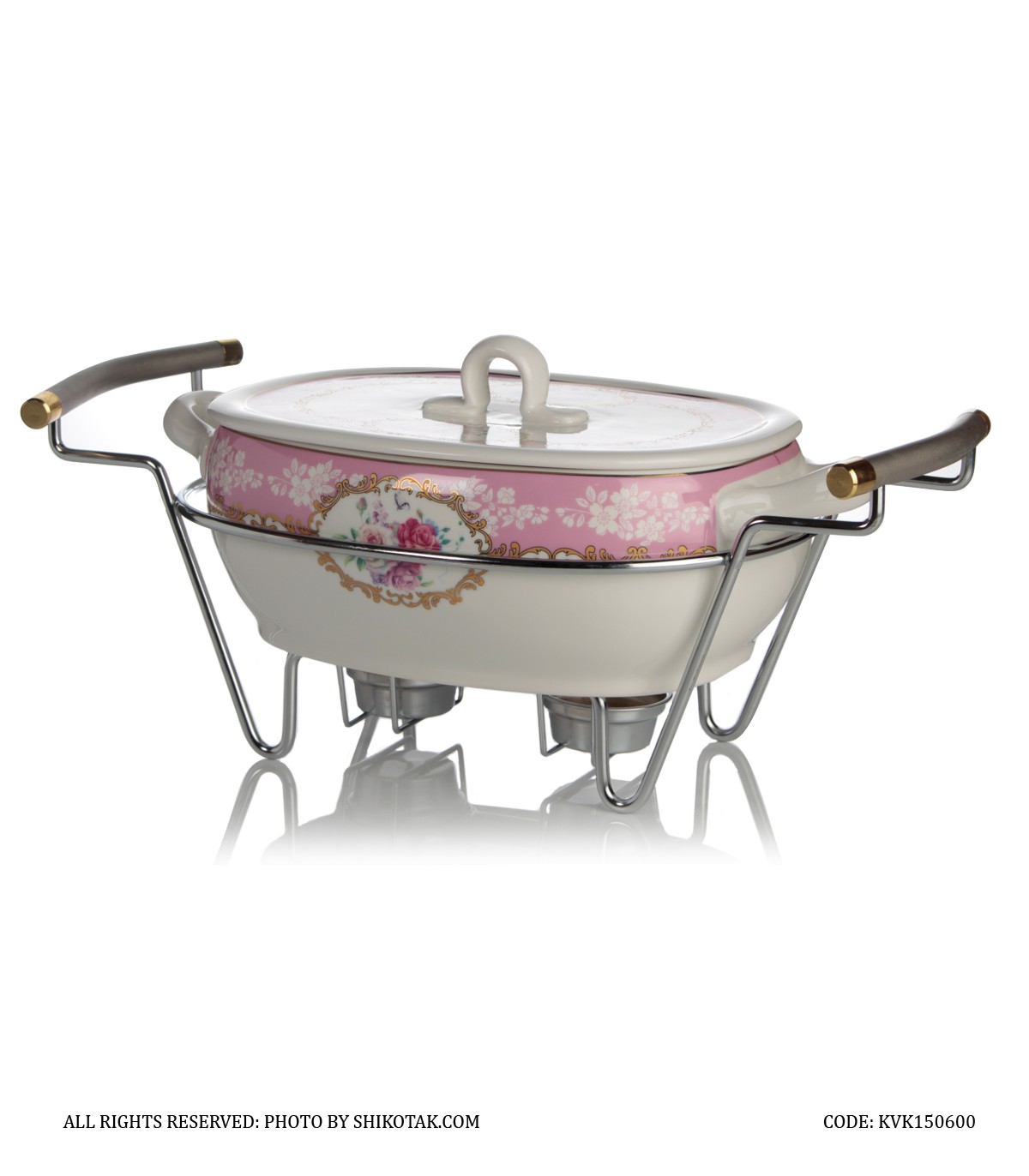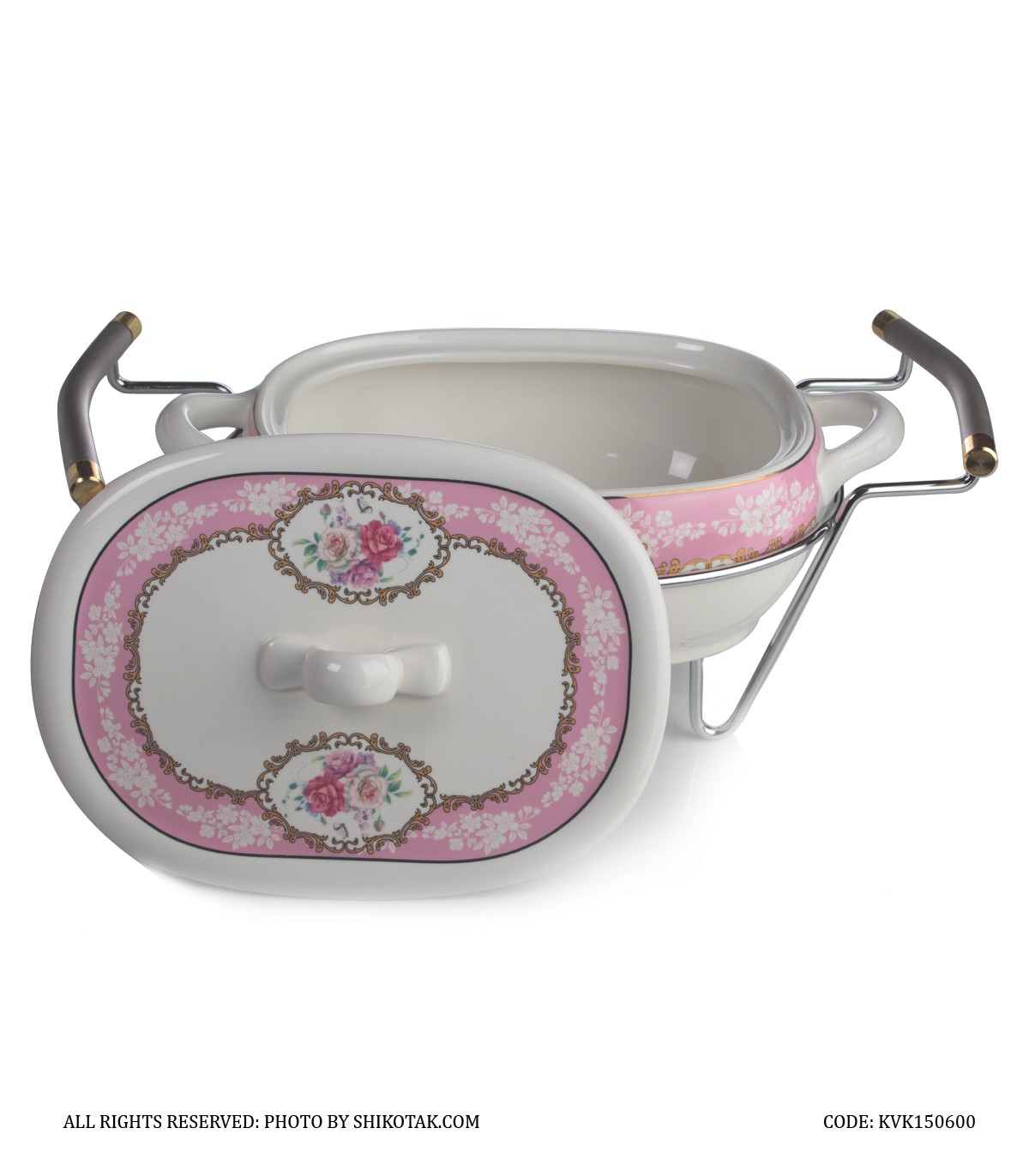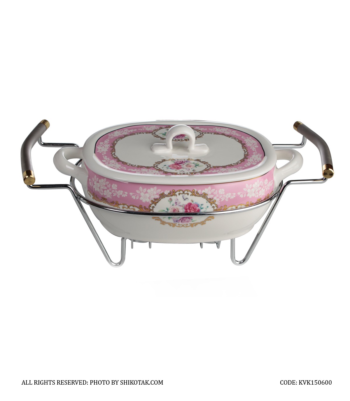 این ظرف سوفله درب دار است و به وسیله یک وارمر غذای شما را گرم نگه می دارد .