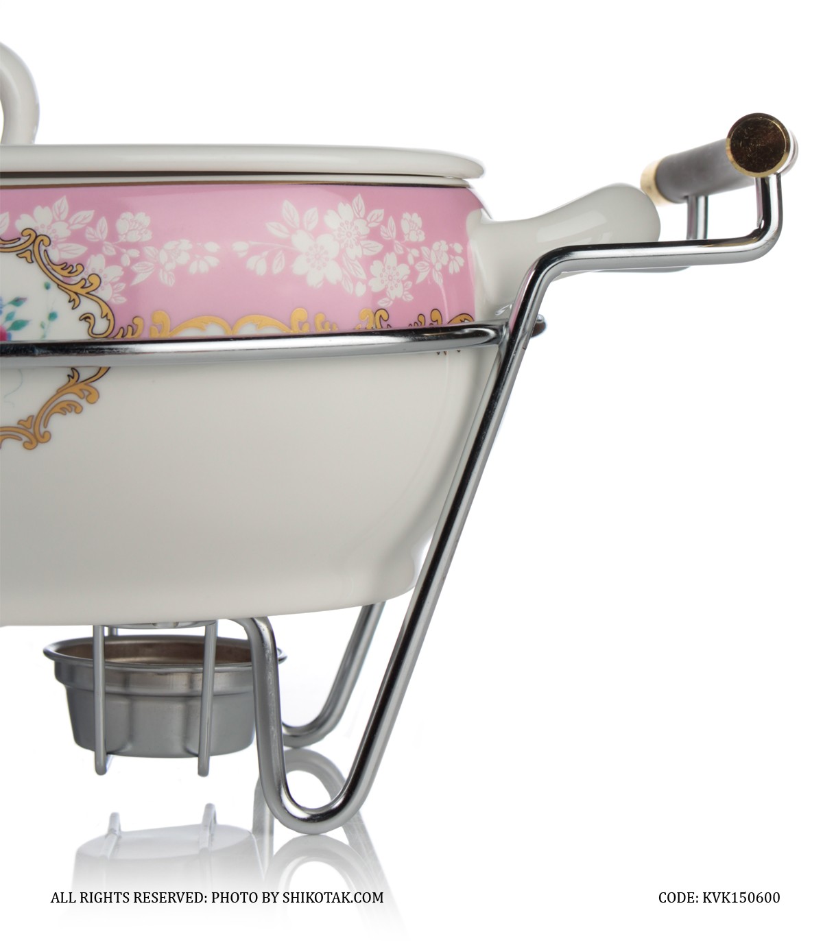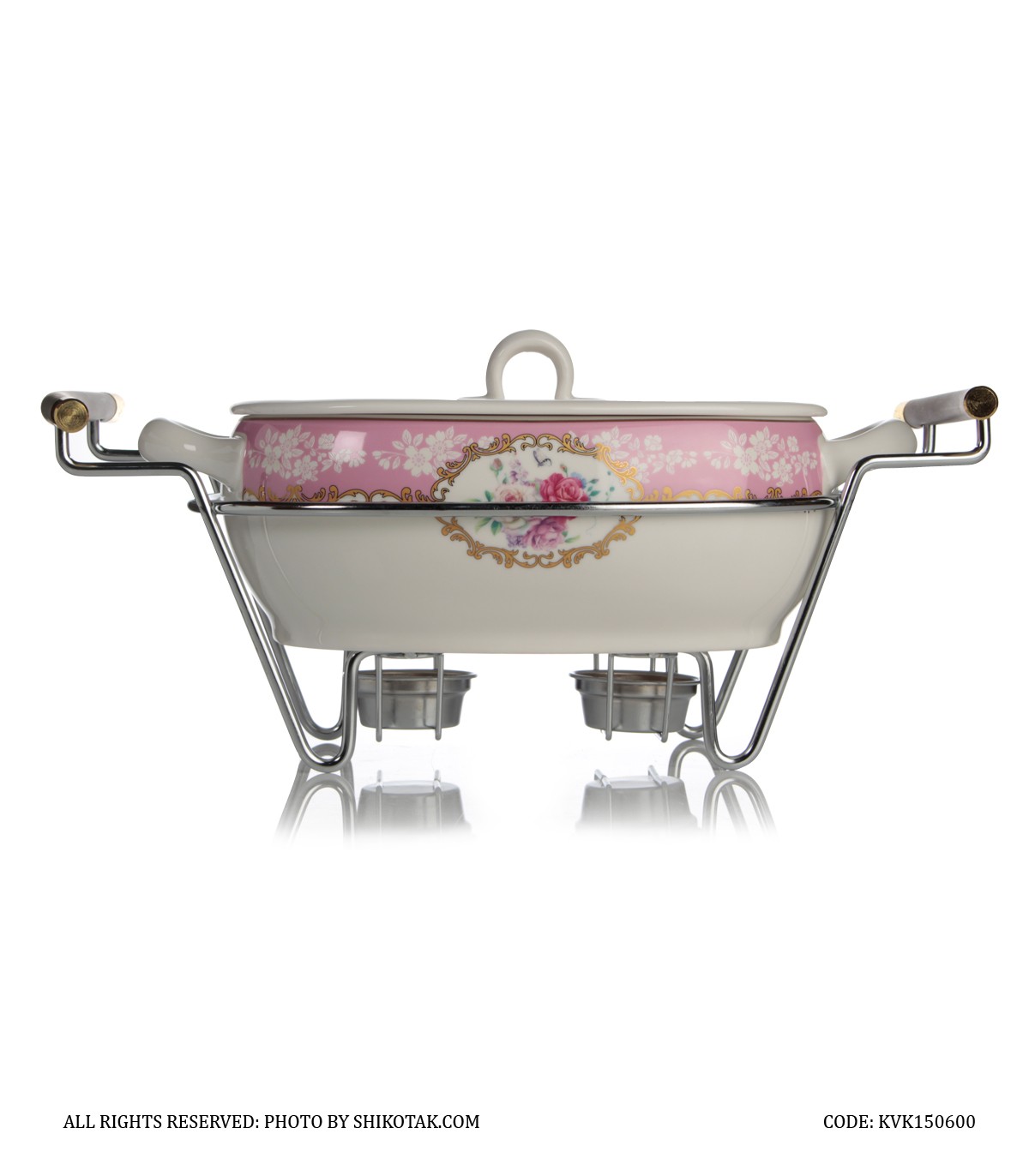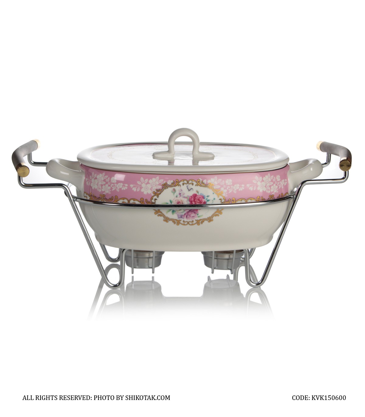 این ظرف سوفله درب دار است و به وسیله یک وارمر غذای شما را گرم نگه می دارد .