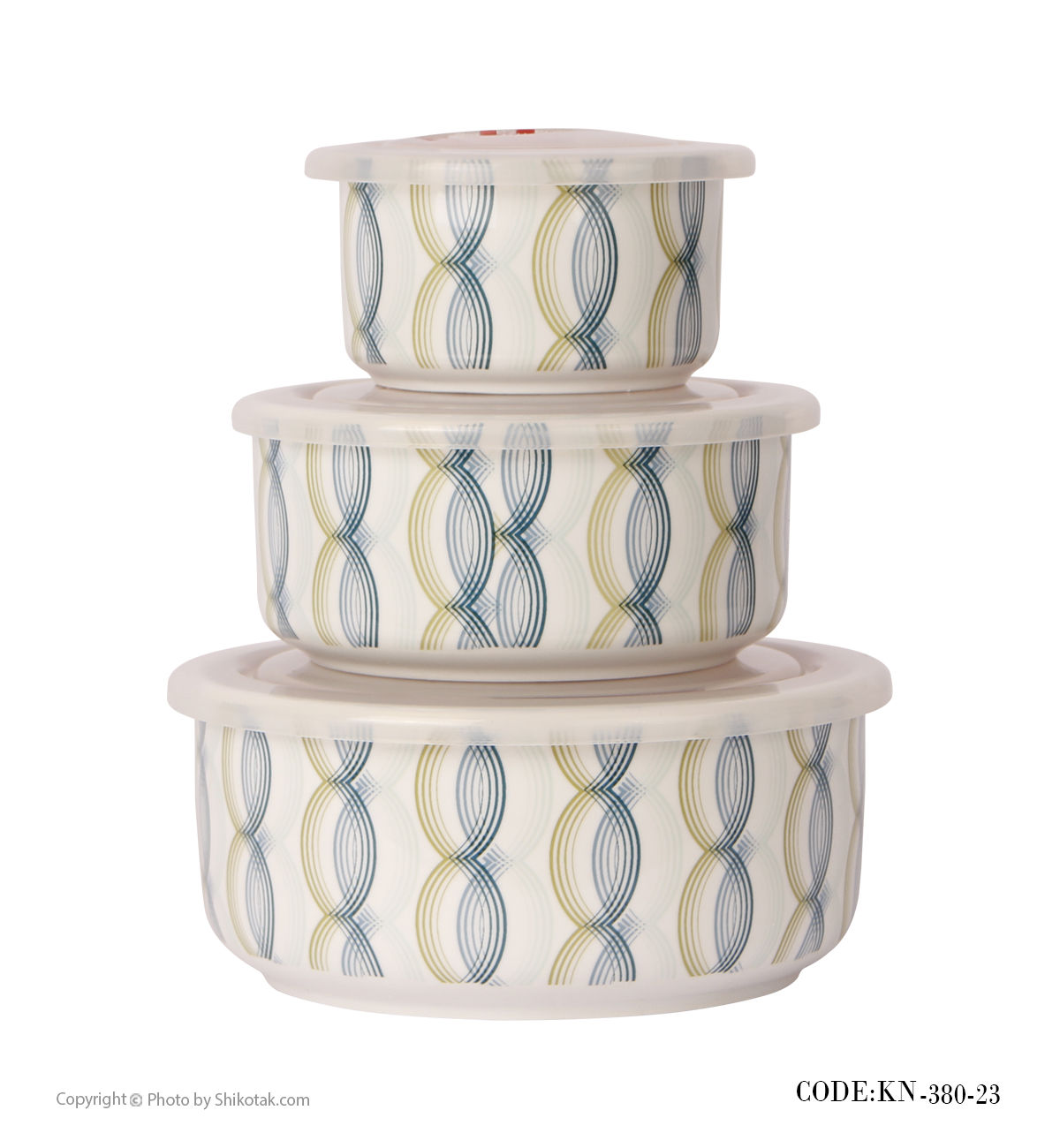 ظروف سه تکه چینی داخل یخچال طرح آبی و زرد