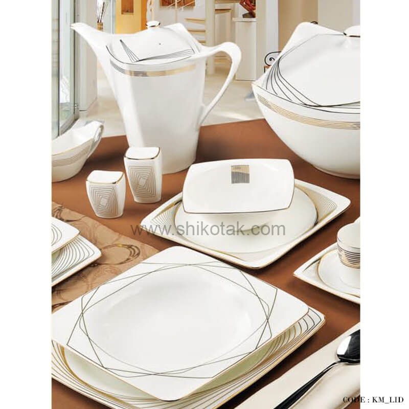 شامل | سوپ خوری با در-سالاد خوری -دیس-بشقاب غذاخوری- بشقاب خورش خوری- پیش دستی-قوری با در – فنجان چای و نعلبکی- قندان با در – سس خوری و زیر سس خوری – شکر ریز- آبلیمو خوری – نمک پاش- فلفل پاش |