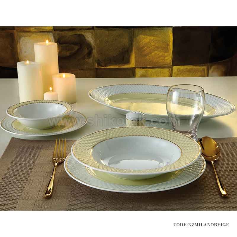 ظروف چینی زرین ۶ نفره زرین طرح میلانو کرم