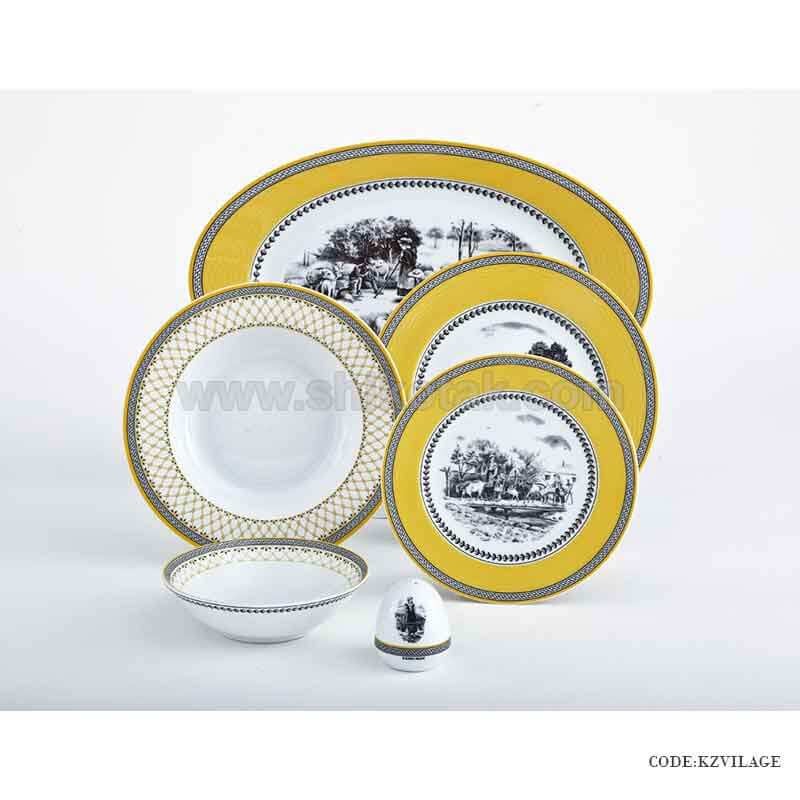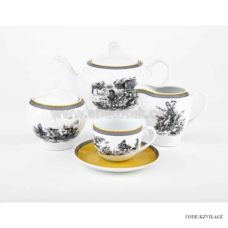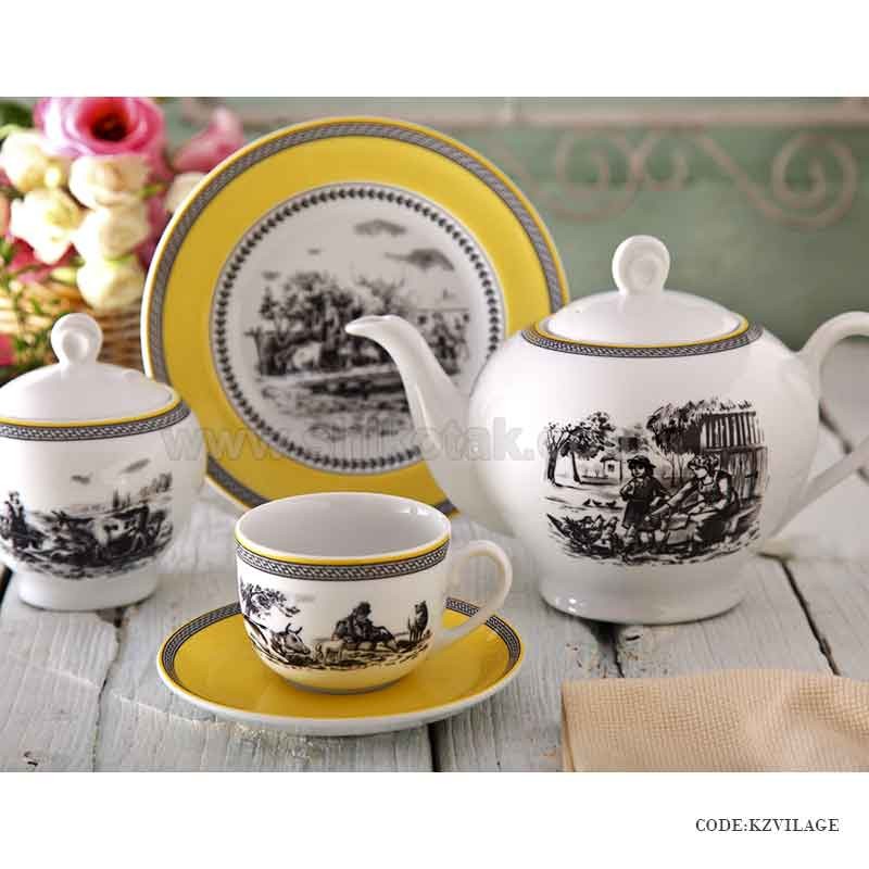 ظروف چینی ۶ نفره زرین طرح ویلیج