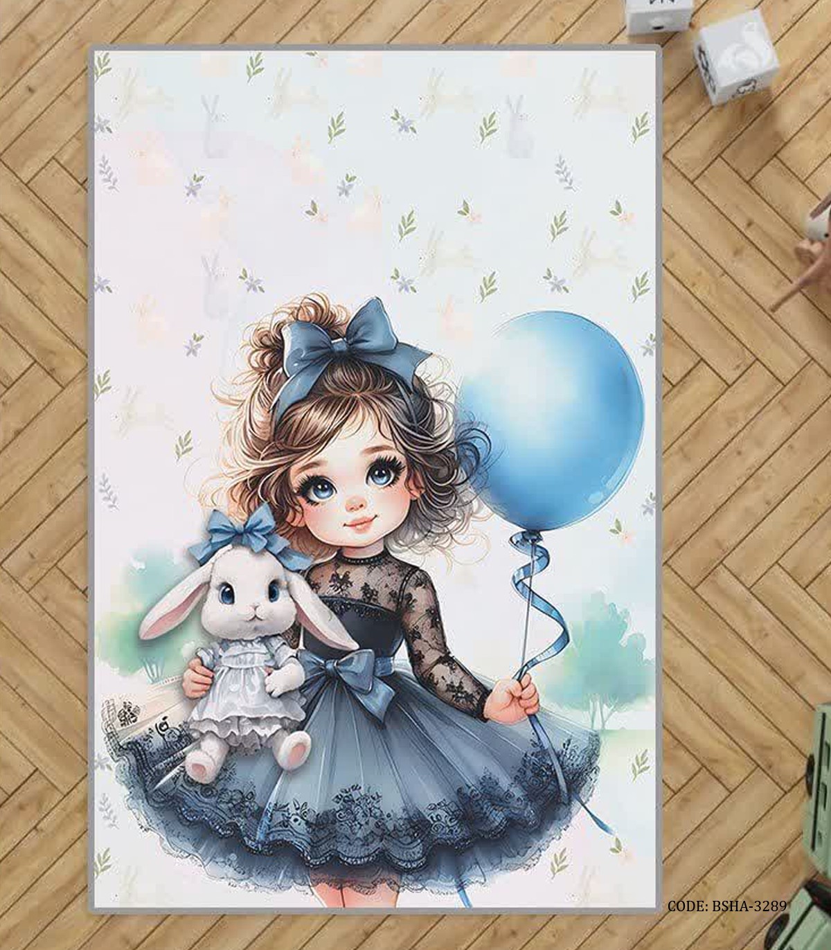 فرش اتاق دخترانه طرح دختر مو فرفری مدل Curly Haired Girl