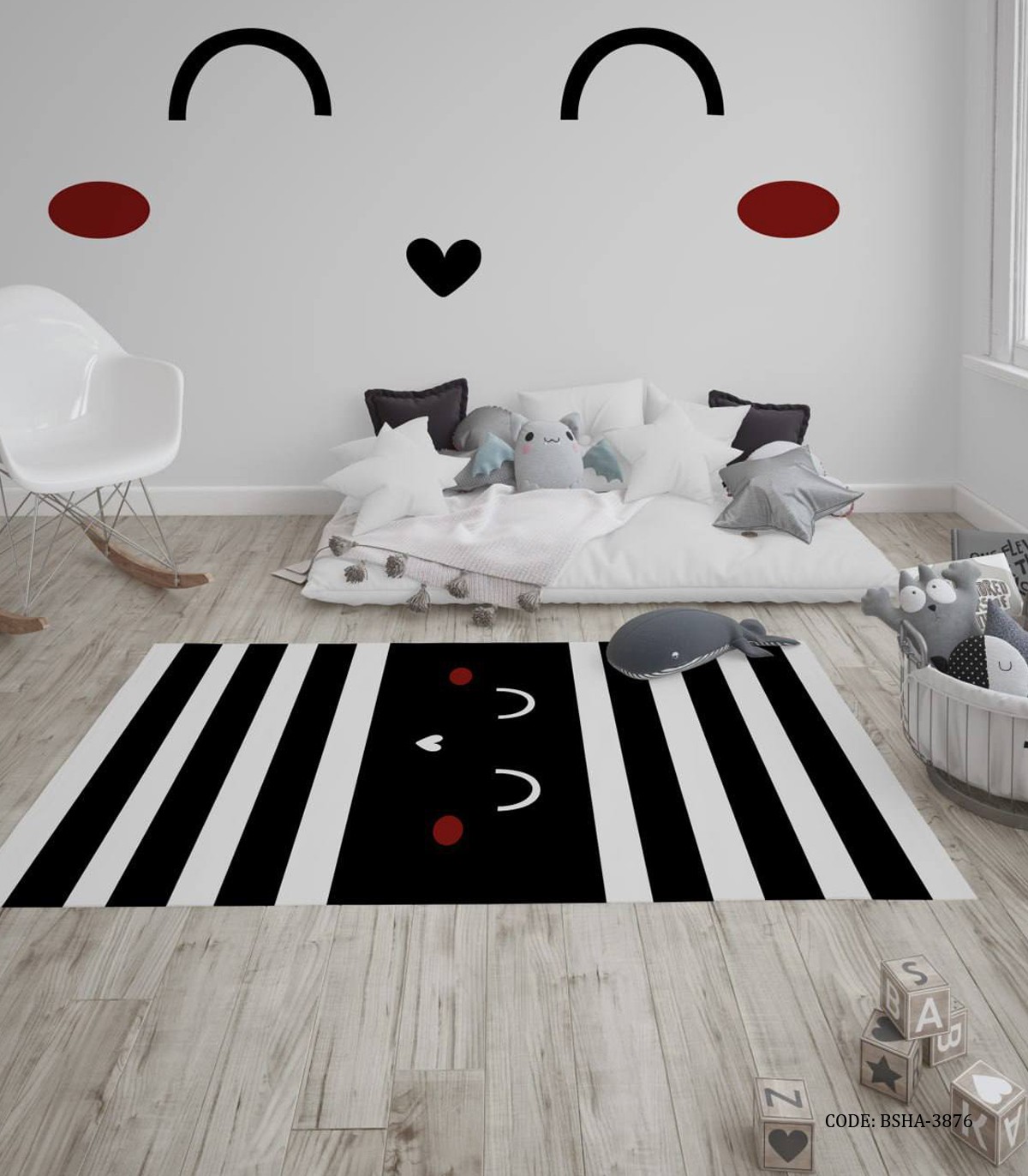 فرش اتاق نوجوان سفید مشکی طرح لبخند مدل Smile