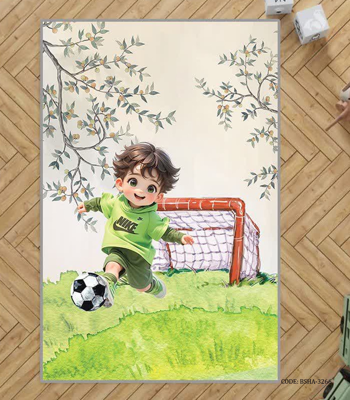 فرش اتاق کودک پسرانه طرح فوتبالیست مدل Let’s Go