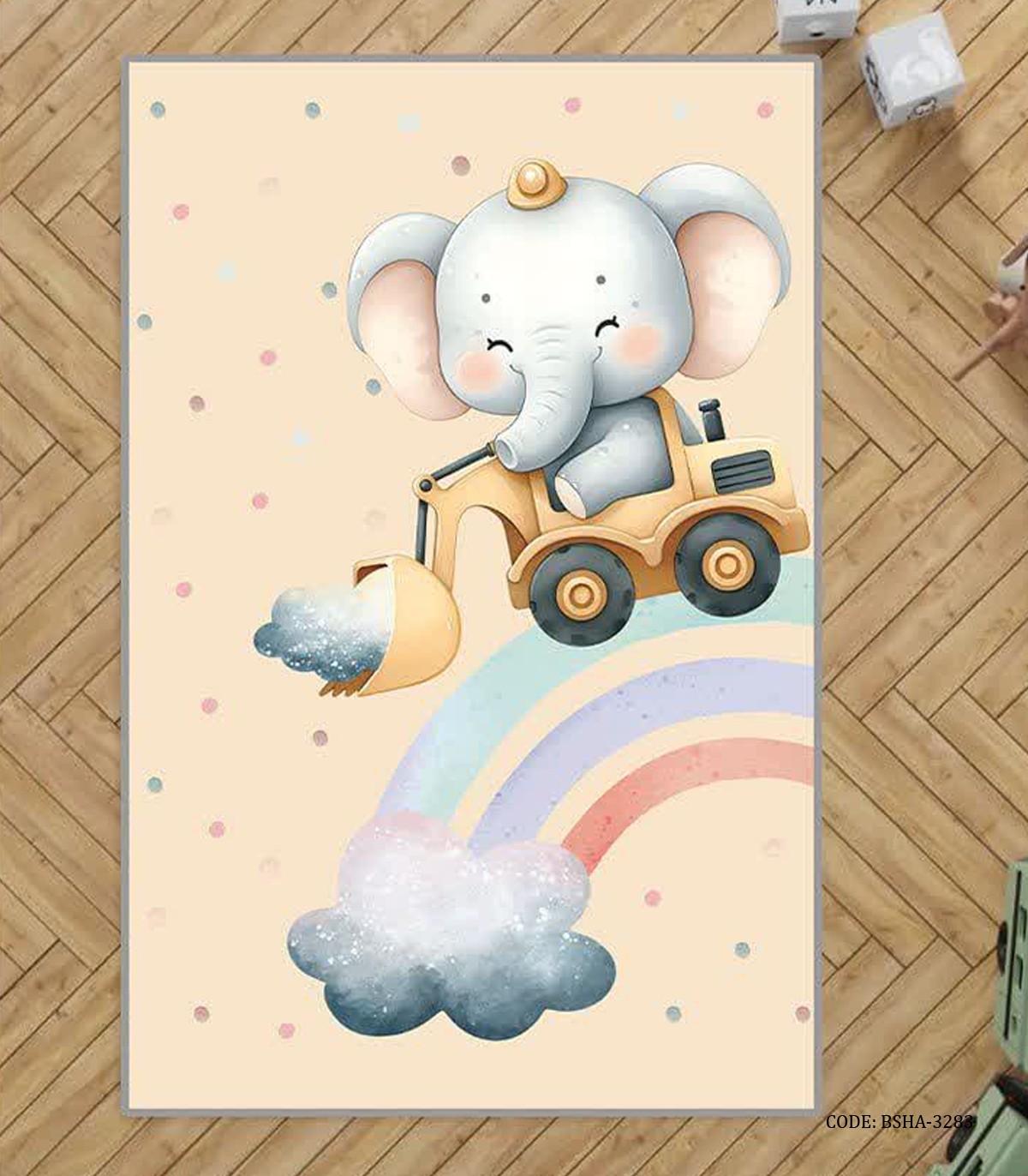 فرش اتاق کودک پسرانه طرح فیل مدل Raimbow