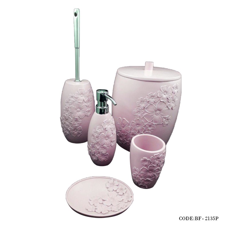 لوازم سرویس بهداشتی طرح گل صورتی مدل ۲۱۳۵