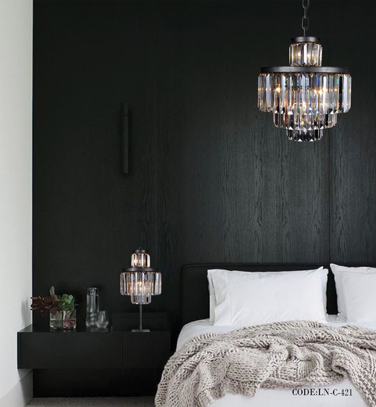 لوستر آباژوری گرد دو لاین بدنه مشکی کد ۴۴۴