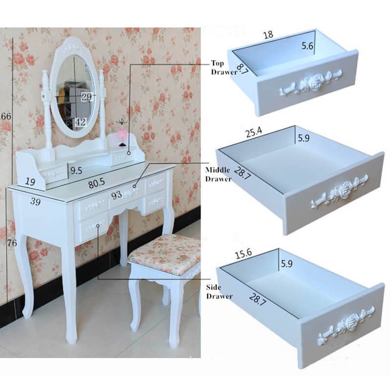 - دارای آینه و 7 عدد کشو کوچک با ریل آرام بند