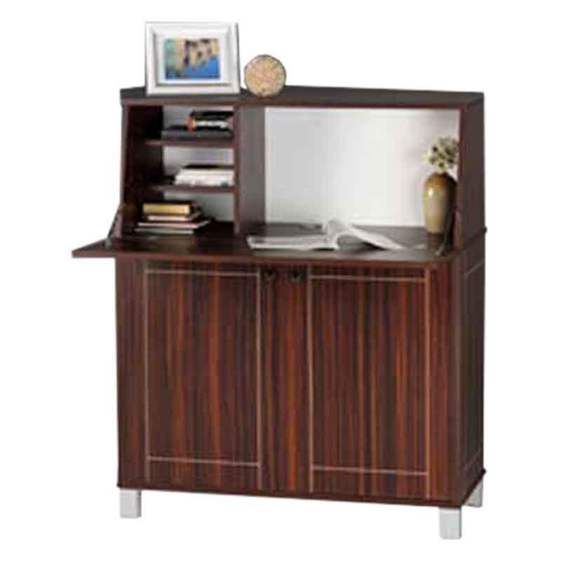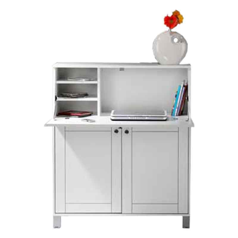 در زیر این میز تحریر یک کمد طراحی شده است که به شما این امکان را می دهد وسایل زیادی را در آن جای دهید و در قسمت بالا یک کتابخانه کوچک دارد .
