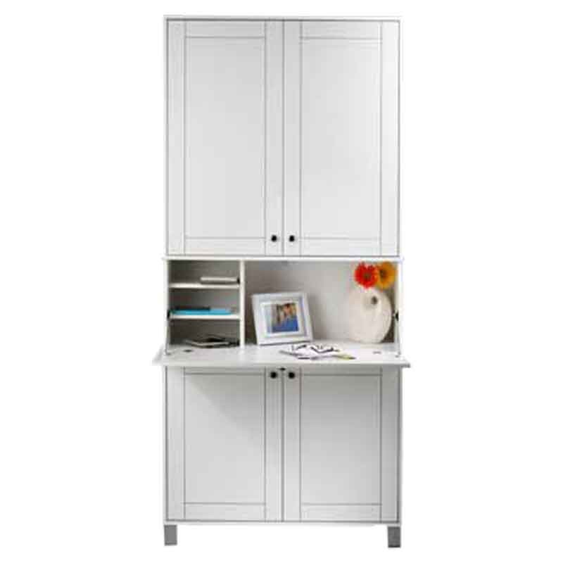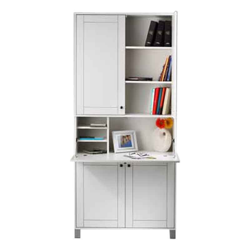در جلوی این میز تحریر یک درب طراحی شده است که با بستن آن یک کمد دارید و با باز کردن آن یک میز تحریر .