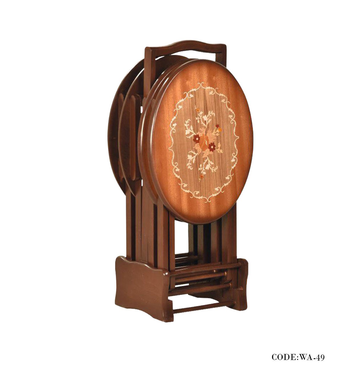 • دارای 4 عدد میز عسلی تاشو و یک استند برای نگهداری میزها