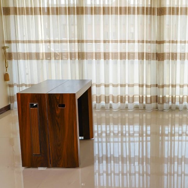 داخل میز یک باکس تعبیه شده که شما میتوانید برای جمع کردن میز صفحه های چوبی روی میز را داخل آن قرار دهید.