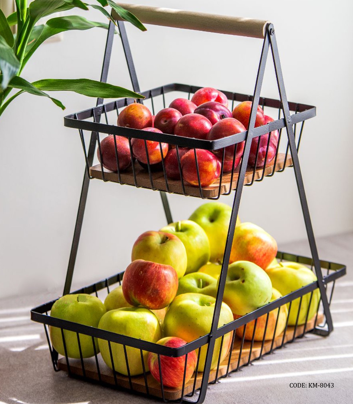 میوه خوری دو طبقه مستطیل چوبی فلزی مدل جنسیس
