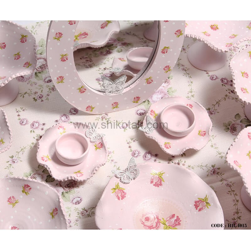 - شامل 6عددکاسه پایه دار،یک عدد کاسه بدون پایه، دو عدد شمعدان و یک عدد آینه