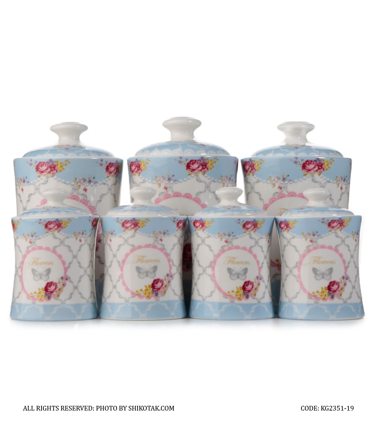 پاسماوری سرامیکی هفت تکه آبی طرح flower