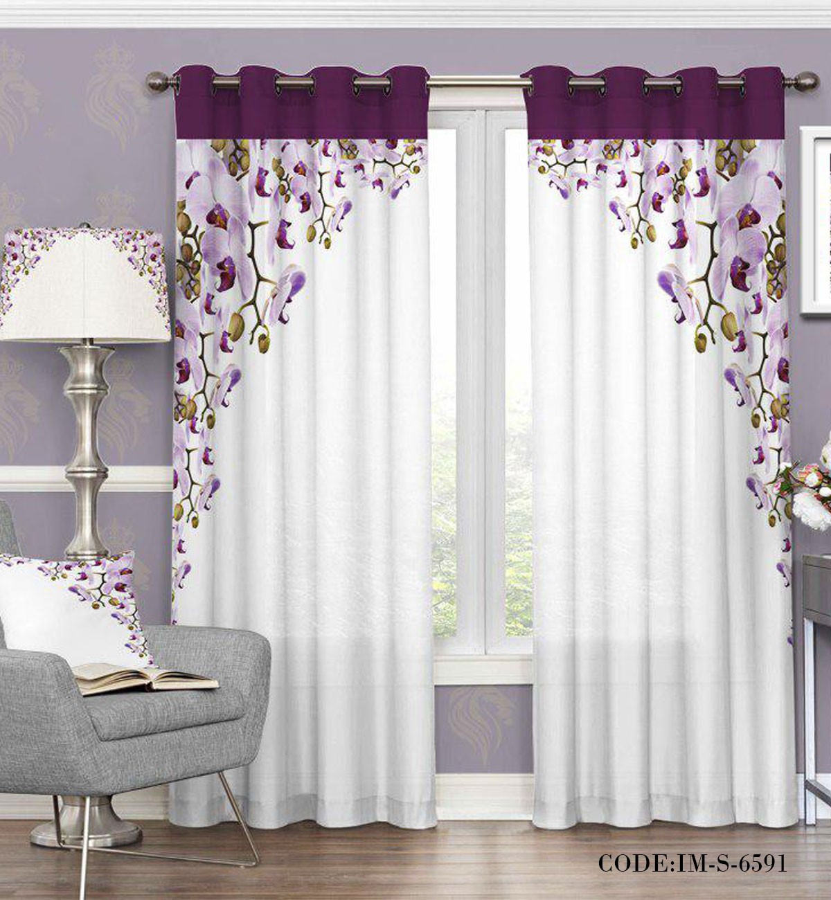 پرده اتاق خواب طرح ارکیده مدل ۶۵۹۱