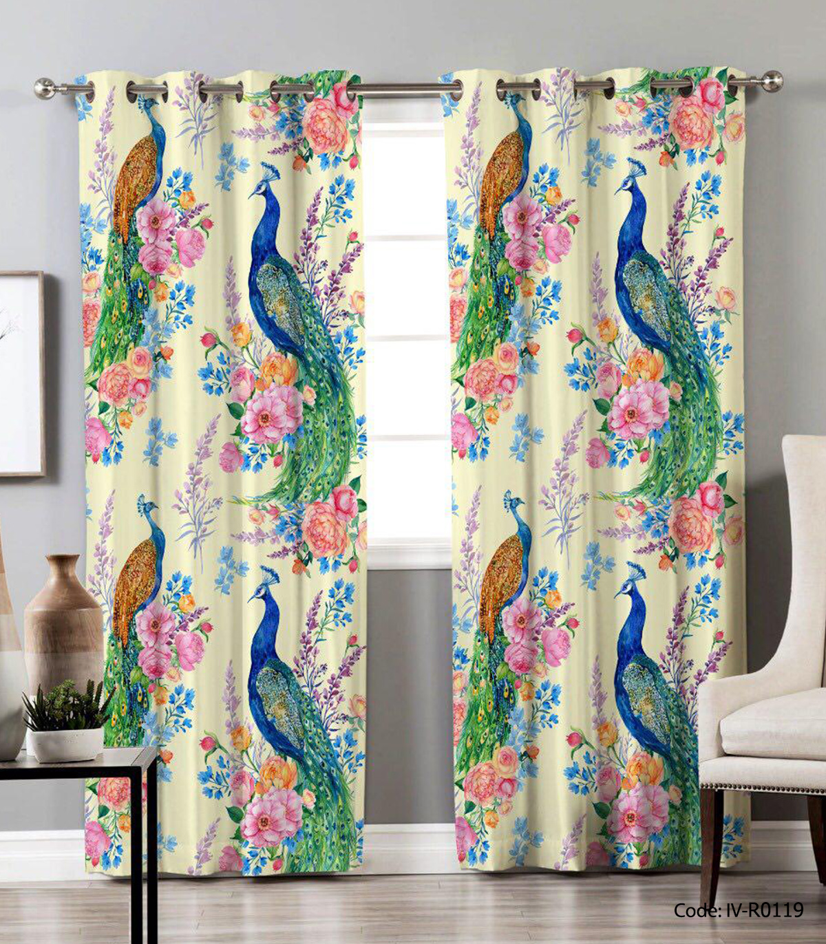 پرده دو تکه پانچی اتاق خواب مدل PEACOCH