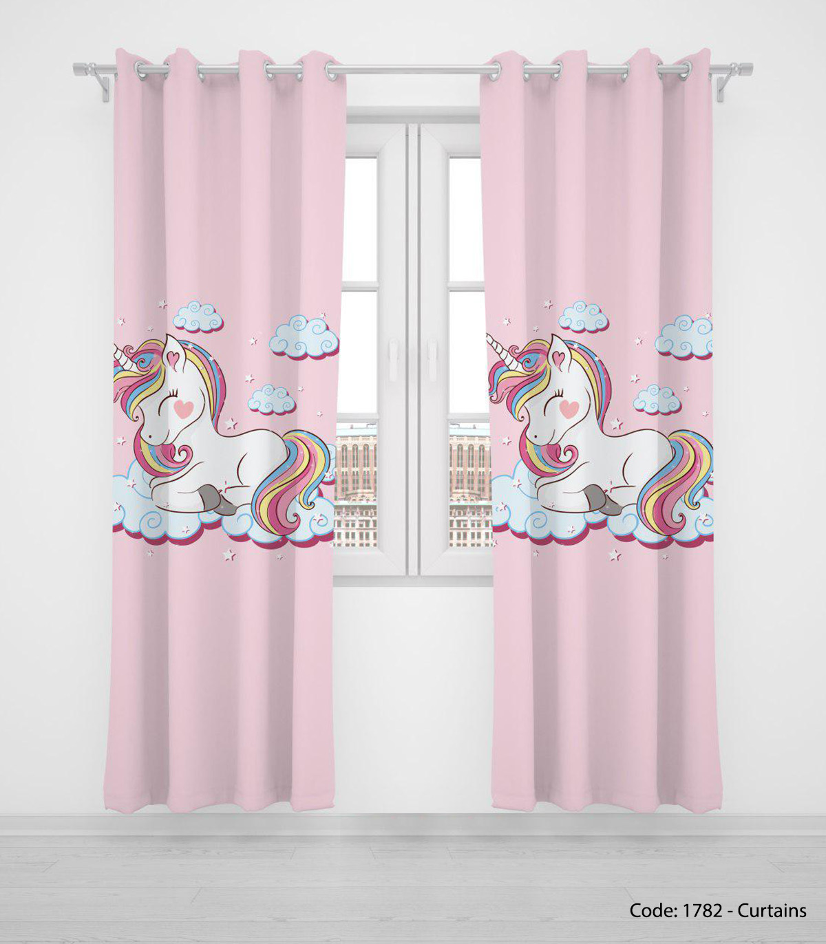 پرده دو تکه پانچی اتاق کودک مدل اسب تک شاخ