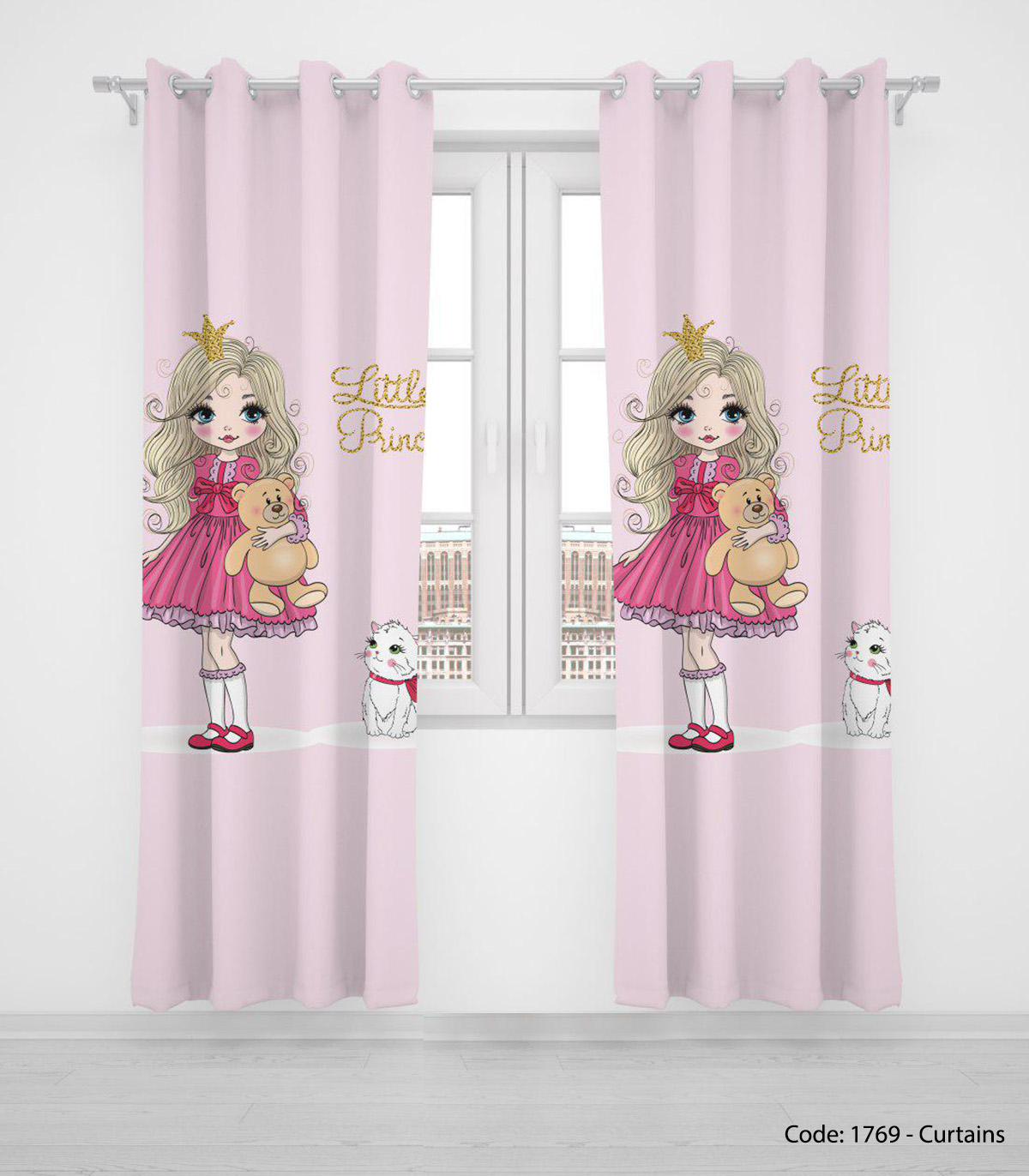 پرده دو تکه پانچی اتاق کودک مدل BEAR AND CAT