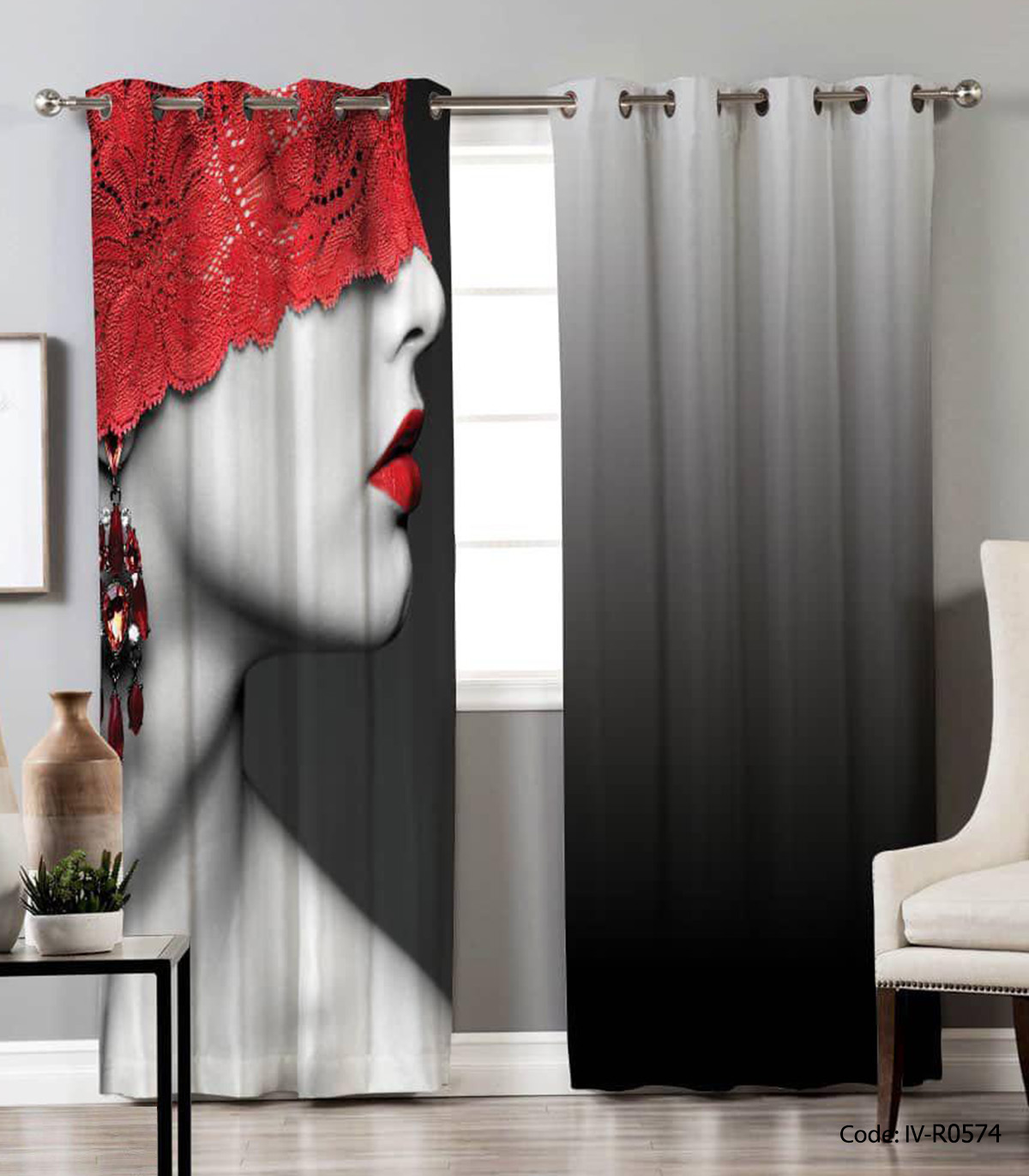 پرده دو تکه پانچی مدل قرمز