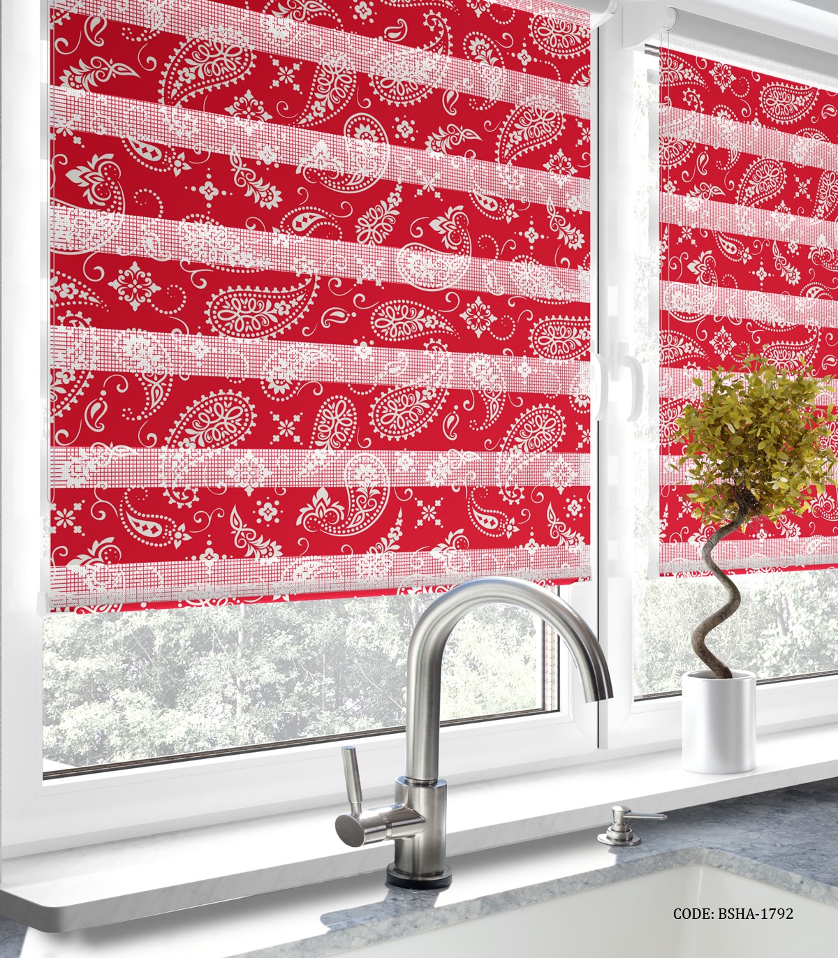 پرده زبرا آشپزخانه طرح ترنج زمینه قرمز