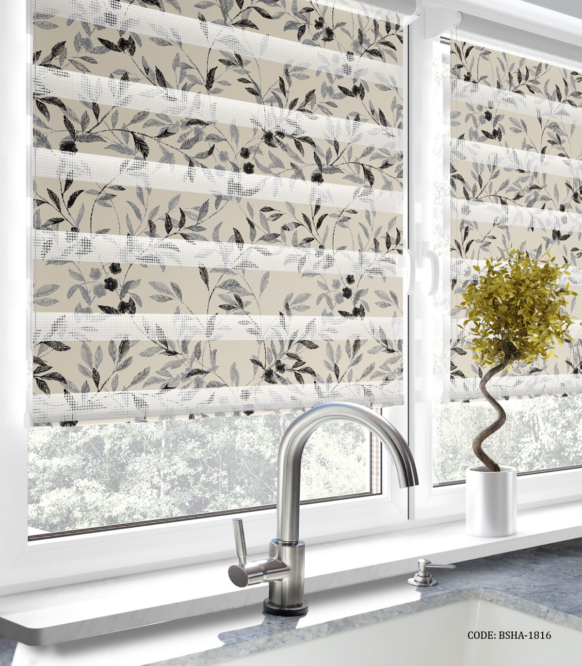 پرده زبرا آشپزخانه طرح شاخه های نارون