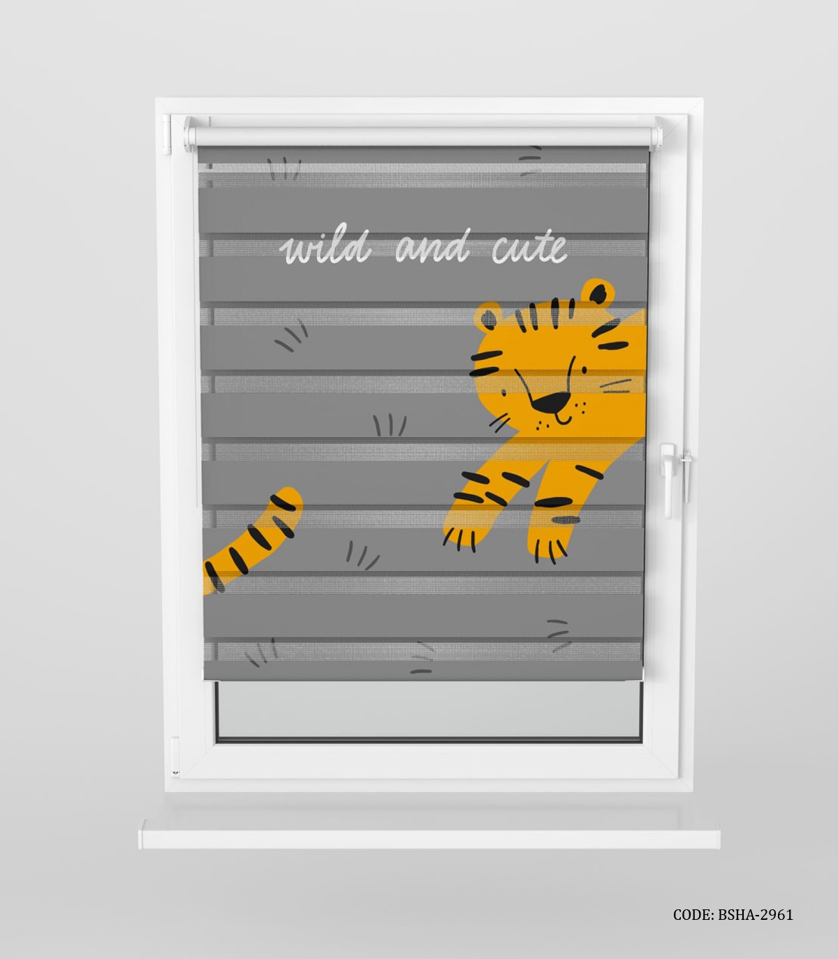 پرده زبرا اتاق کودک پسرانه طوسی طرح ببر مدل Tiger