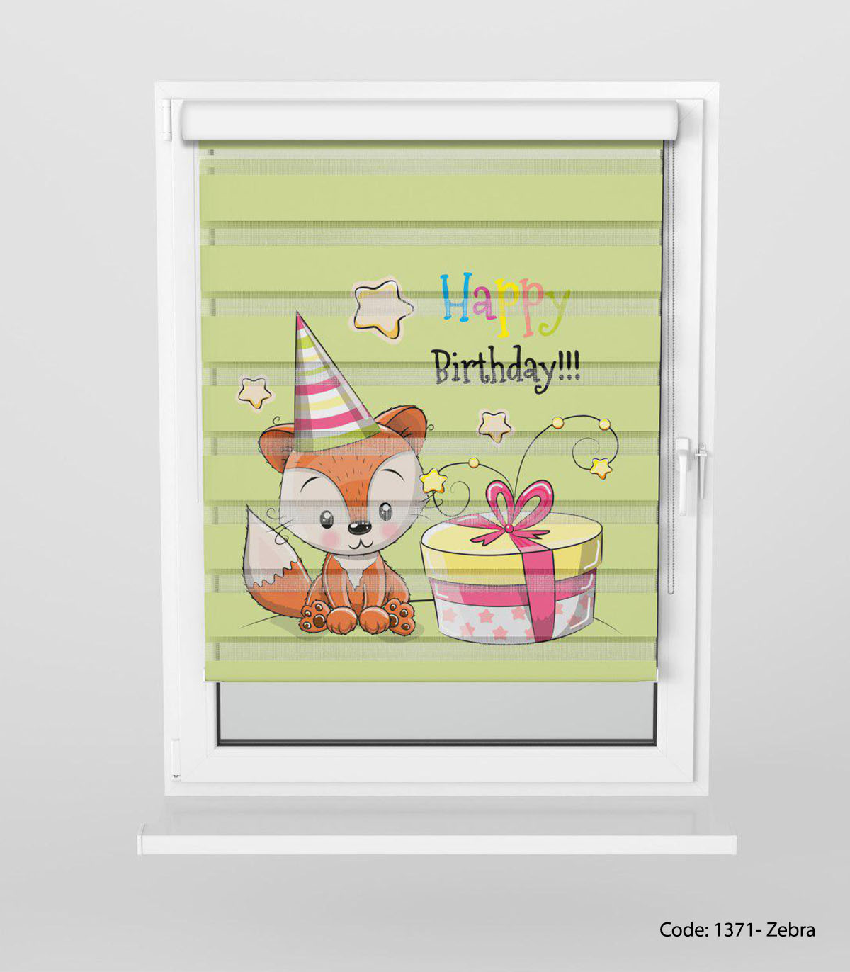پرده زبرا سبز کودکانه مدل BIRTHDAY