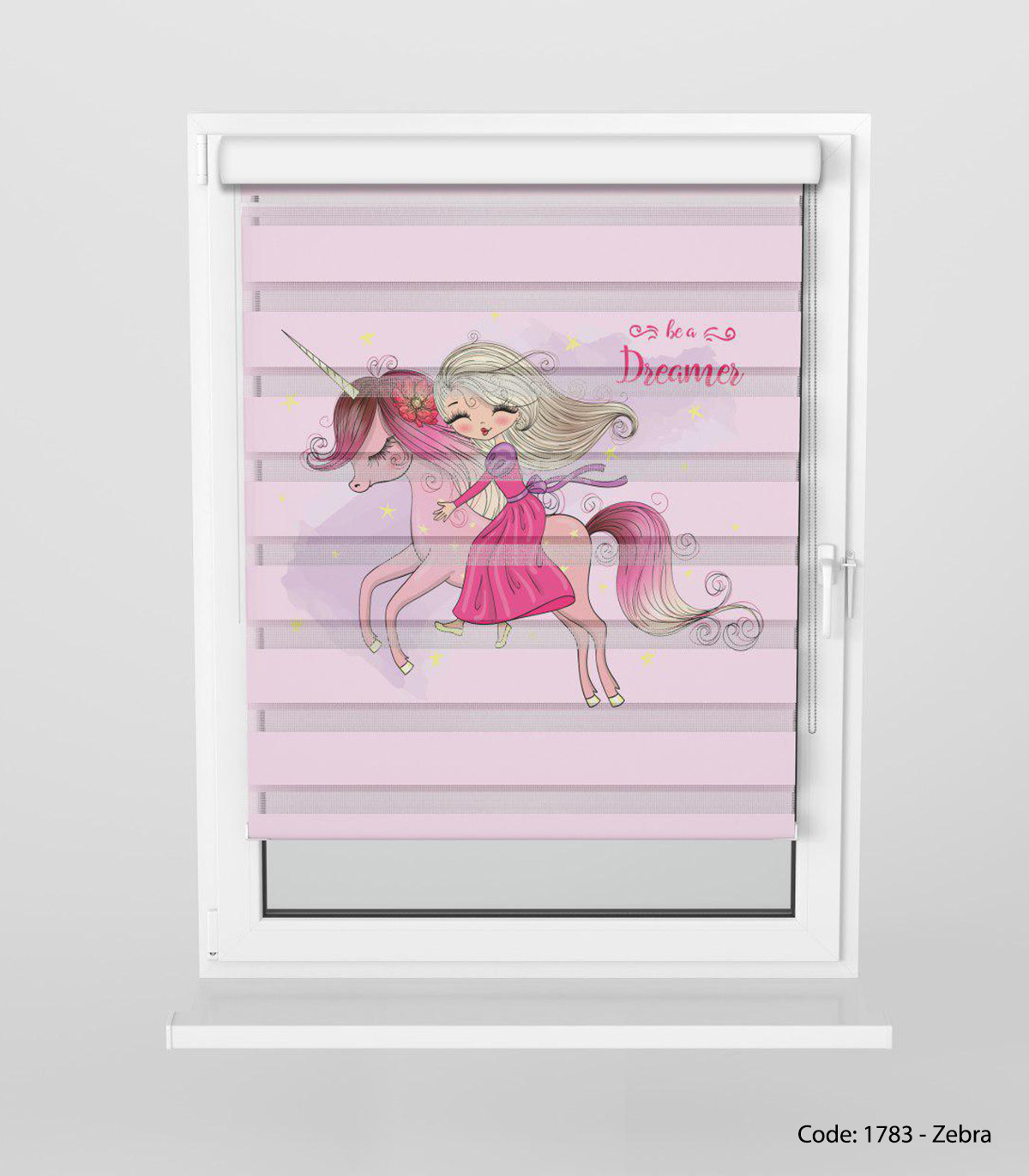 پرده زبرا صورتی دخترانه مدل HORSEMAN