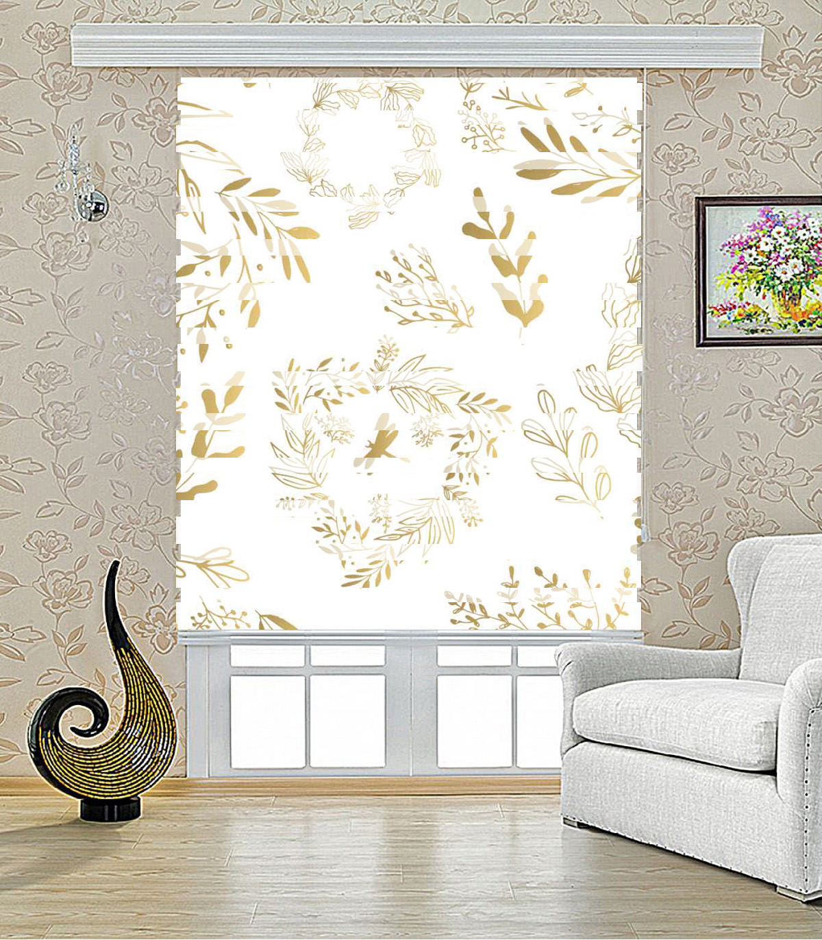 پرده زبرا طرح برگ طلا مدل ۱۰۱۱