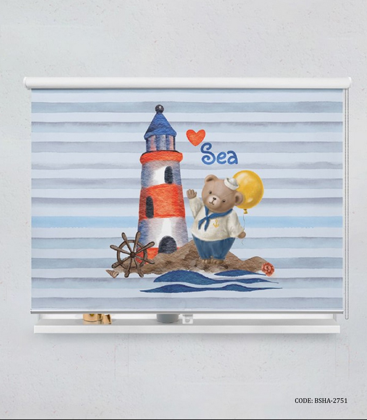 پرده شید اتاق کودک پسرانه طرح خرس ملوانی مدل Sailor Bear