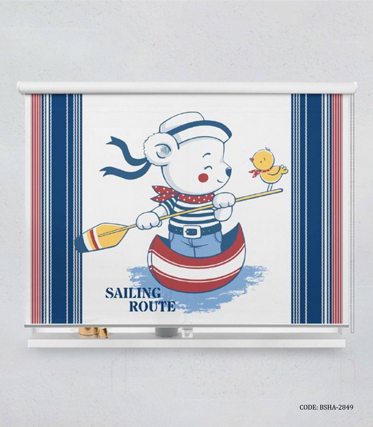 پرده شید اتاق کودک پسرانه طرح دریانوردی مدل Sailing Route