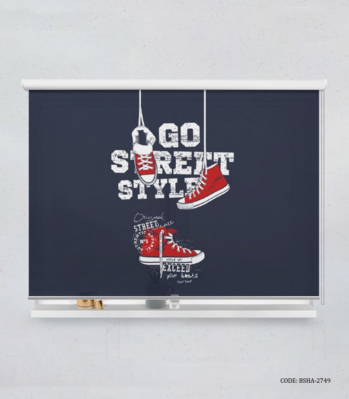 پرده شید اتاق کودک پسرانه طرح کتونی مدل Street Style
