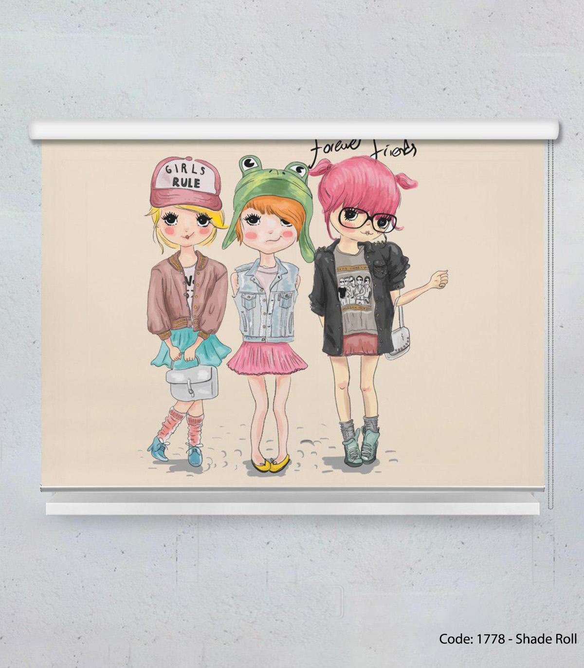 پرده شید بالارو دخترانه مناسب اتاق نوجوان مدل FOREVER FRIENDS