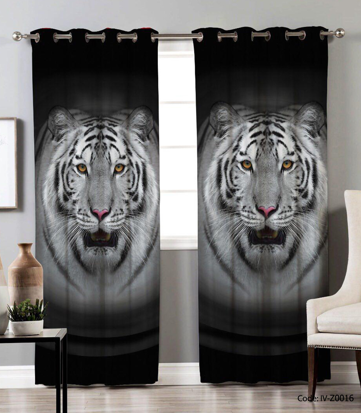 پرده پانچی اتاق خواب مدل ببر نقره ای