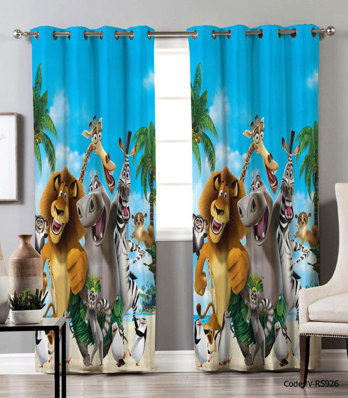 پرده پانچی اتاق کودک پسرانه مدل ماداگاسکار
