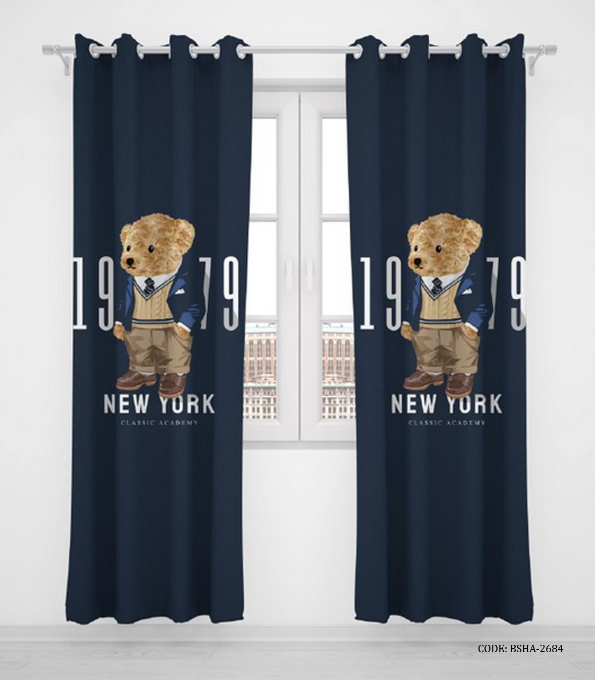 پرده پانچی اتاق کودک پسر دو تکه مدل خرس پولو