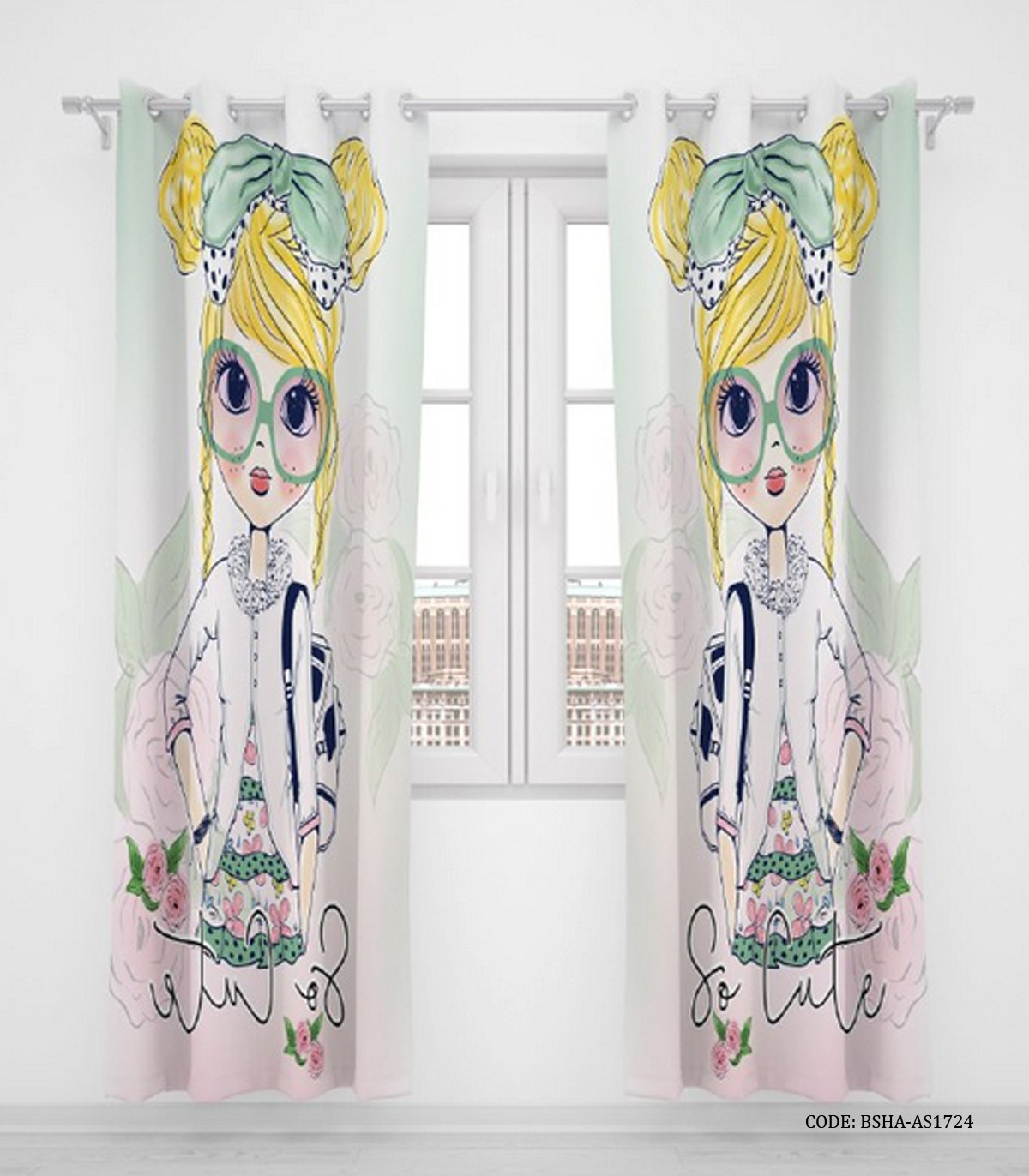 پرده پانچی دخترانه دو تکه طرح دختر مدل So Cute Girl