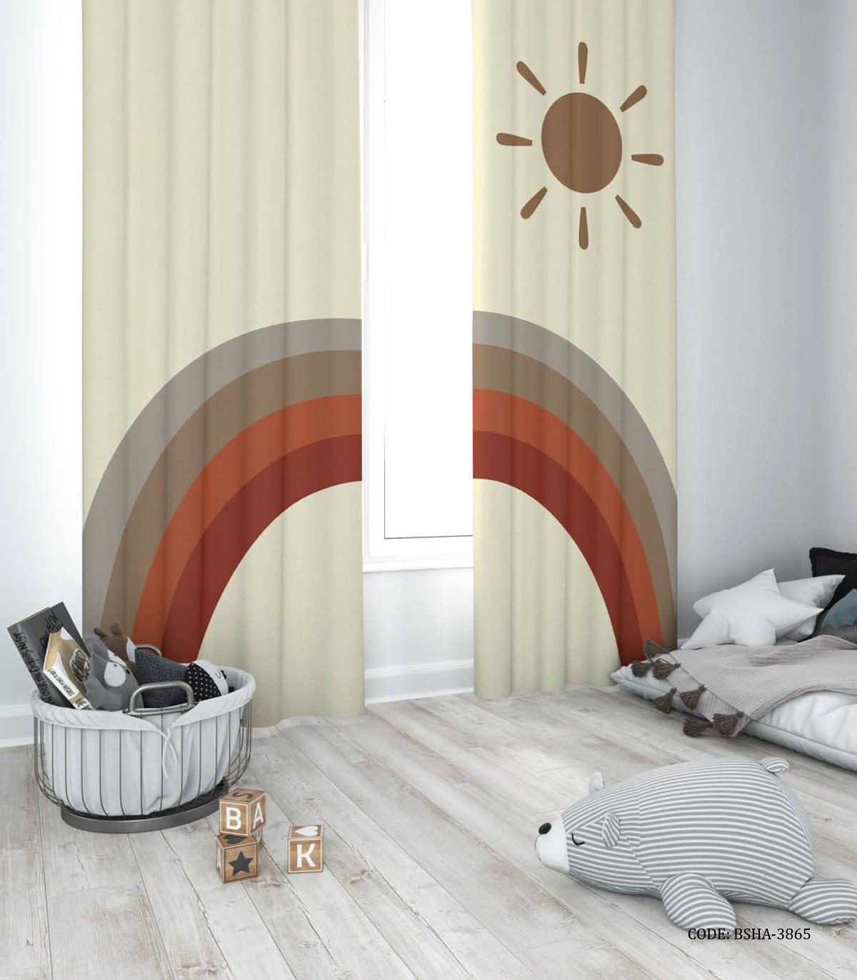 پرده پانچی دو تکه اتاق دخترانه طرح رنگین کمانی مدل Sun